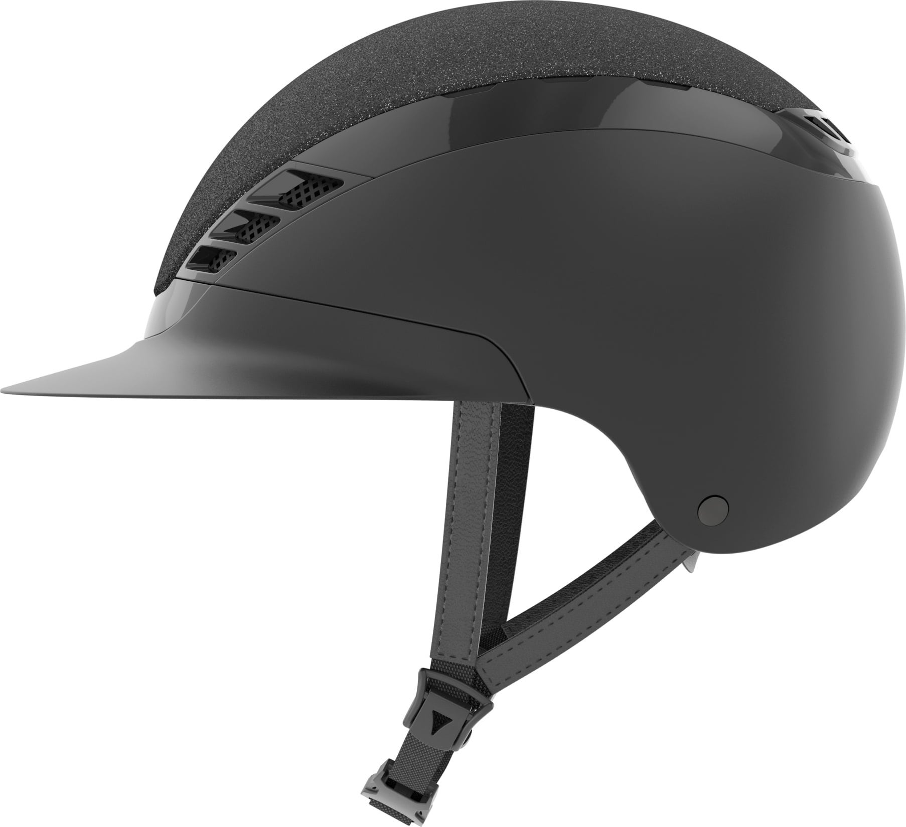 AirLuxe SUPREME GLAM från Pikeur kombinerar hög säkerhetsstandard med en iögonfallande, elegant design. Den matta hjälmskalet möter ett glittrande toppskal och glänsande detaljer, vilket skapar en exklusiv men samtidigt sportigt tidlös look. Det förlängda visiret ger både extra elegans och praktisk funktion, medan den genomtänkta konstruktionen garanterar optimal komfort och säker passform. En premiumhjälm för dig som vill kombinera stilmedvetenhet med modern prestanda. Perfekt för ryttare som ställer höga krav på både säkerhet, komfort och glamour.