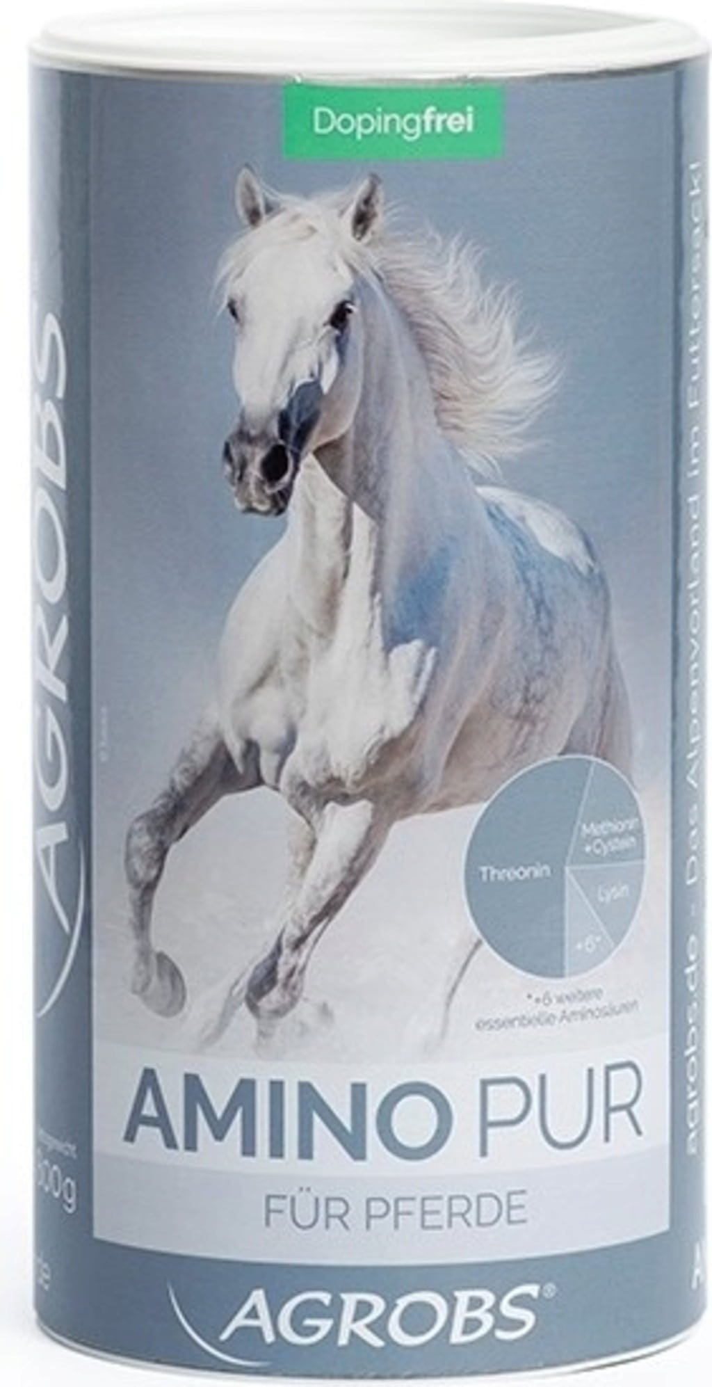 Sammansättningen av Amino pur är baserad på varma lufttorkade ängsgräs och örter, samt spirulinaalger och linfrö. Det är lämpligt för hästar som är känsliga för ämnesomsättning och innehåller mycket tillgängliga aminosyror som t.ex. threonin, metionin och lysin.