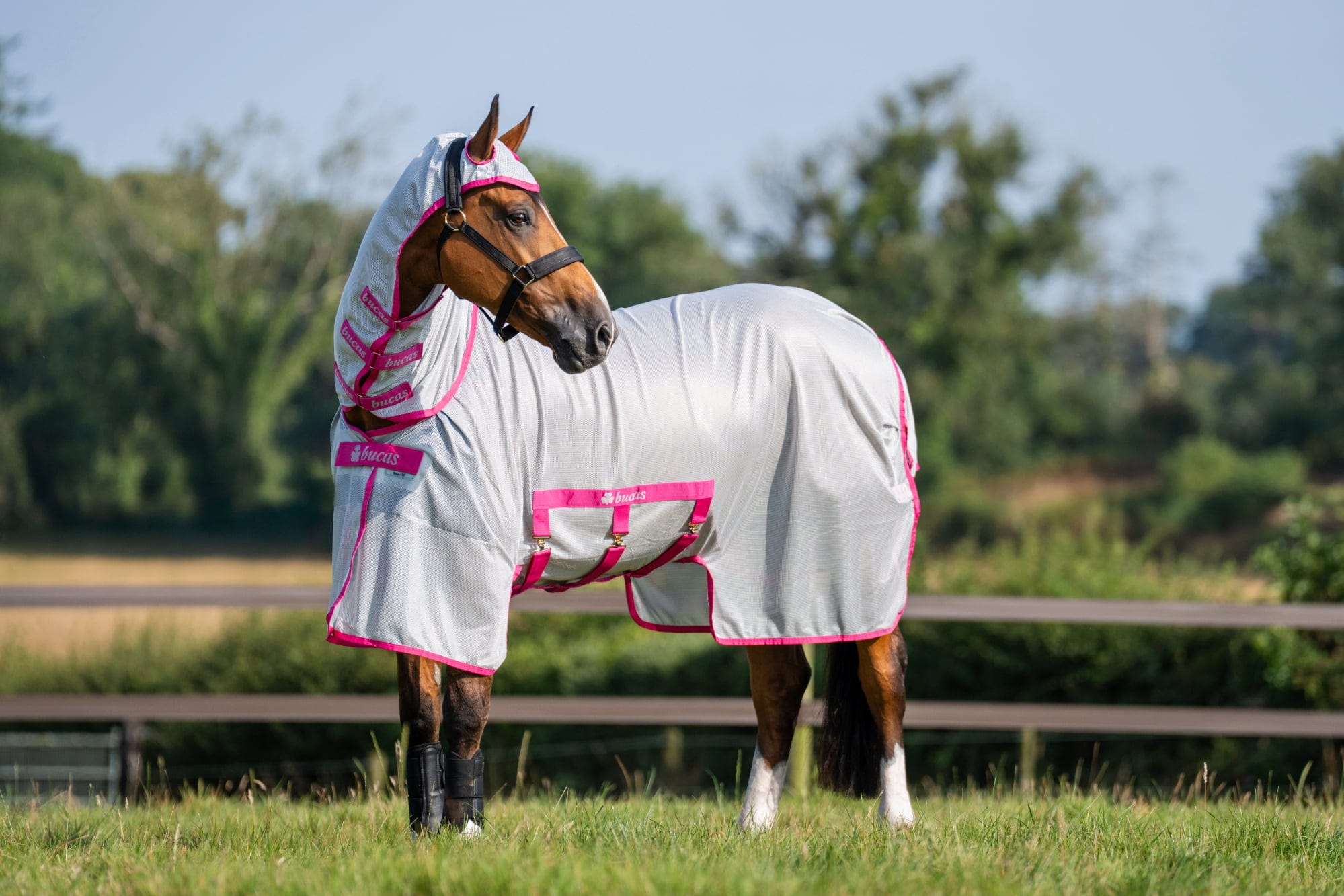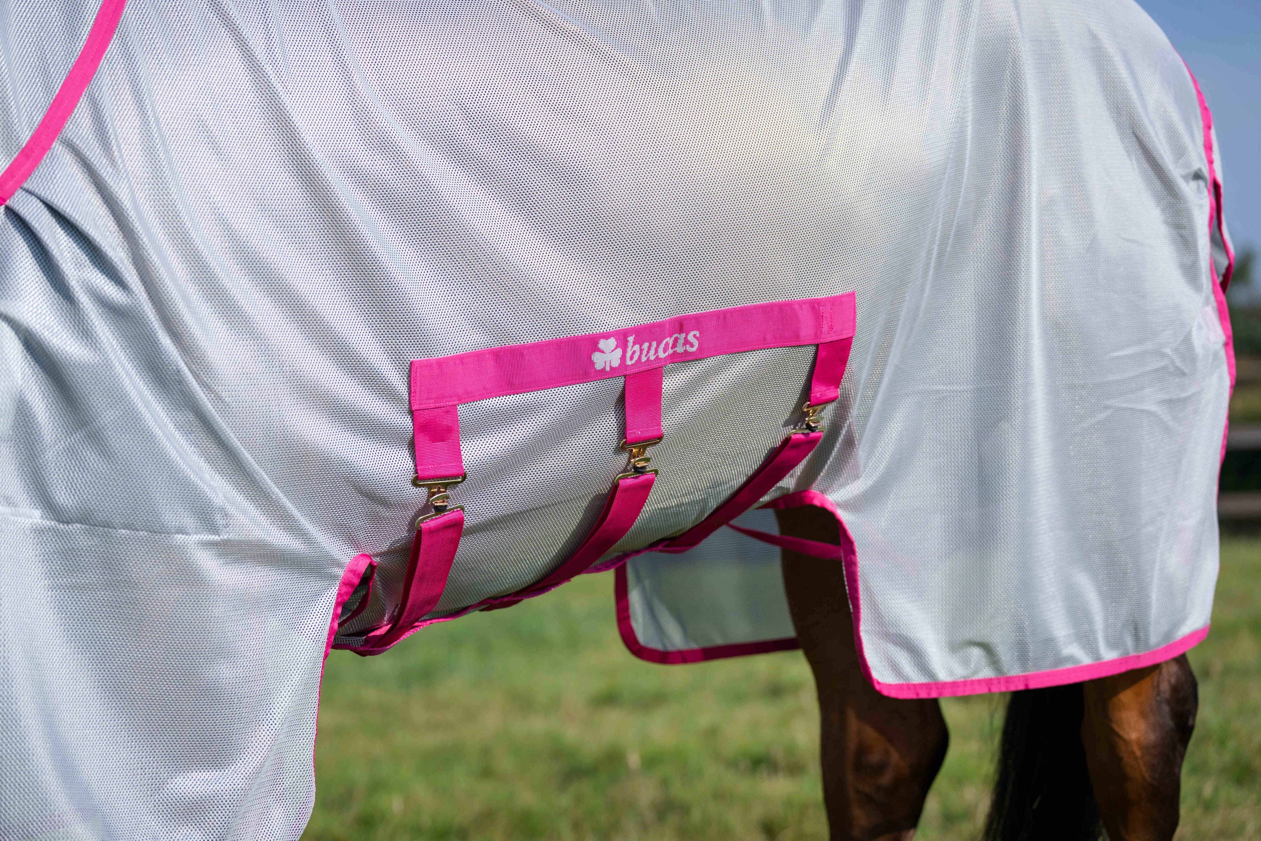 Det innovativa och lätta meshmaterialet i ljus design fungerar som en högfunktionell skyddsbarriär som inte bara håller insekter borta, utan även motverkar att pälsen bleks av stark sol tack vare sin reflekterande yta. Tack vare den speciella textilstrukturen får din häst optimal luftcirkulation under täcket, vilket ger ett behagligt klimat även under varma och vindstilla dagar.