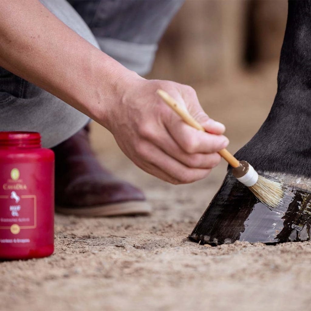 Applicera hovoljan regelbundet med pensel över hela hovväggen. Oljan absorberas snabbt och bevarar samtidigt den naturliga fukten.