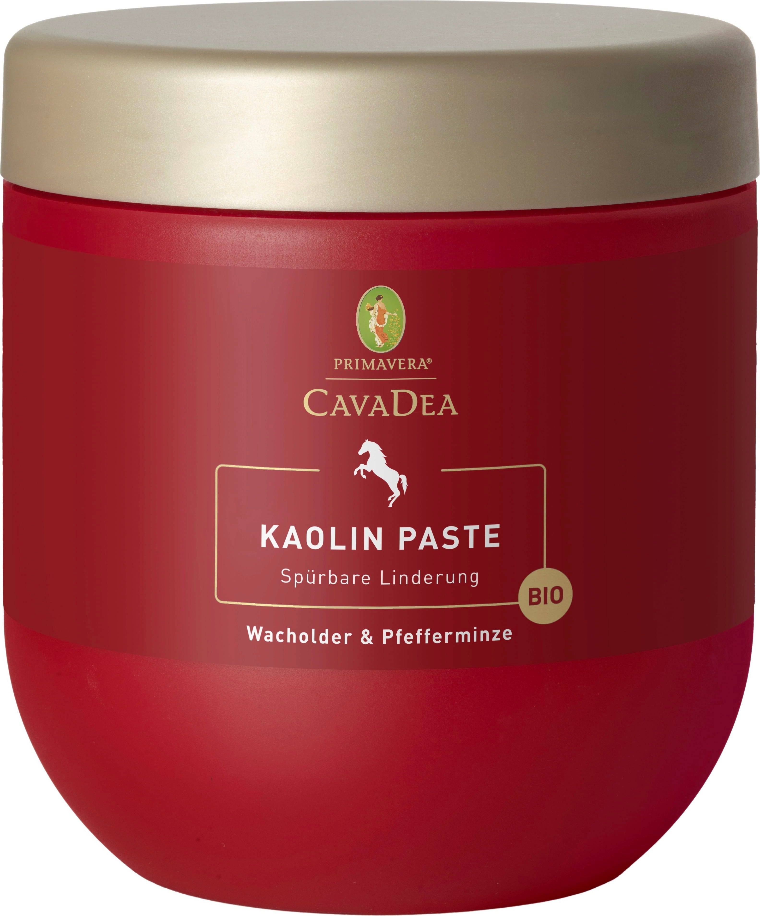CavaDea Kaolinpasta Eko ger mineralisk vård för din hästs ben efter intensiva träningspass eller långa uteritter. Formulan kombinerar grön lera och zink med utvalda eteriska oljor som pepparmynta, enbär och lavendel från ekologisk odling. Dessa ingredienser är kända för sina kylande egenskaper och stödjer välbefinnandet i rörelseapparaten på ett naturligt sätt. Pastan är enkel att applicera och bildar vid torkning ett tunt lager på huden som enkelt kan borstas bort eller sköljas av.