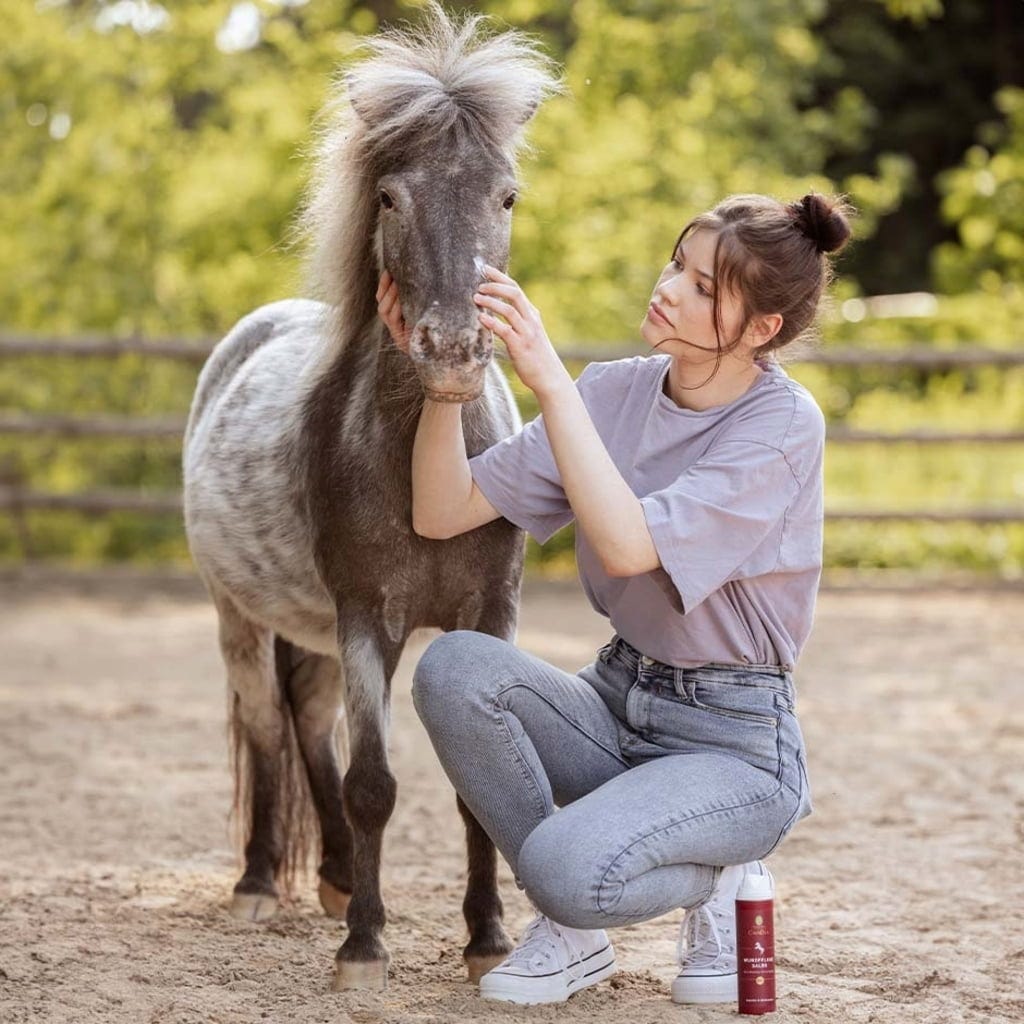 CavaDea Sårvårdssalva Eko fungerar som ett skyddande lager för utsatta hudområden hos din häst. Kombinationen av zink och ekologisk olivolja bildar en barriär på hudytan som skyddar området mot yttre påverkan. Formulan innehåller dessutom eteriska oljor som blå kamomill, frankincense och lavendel från kontrollerad ekologisk odling, vilka bidrar till hudens vård.