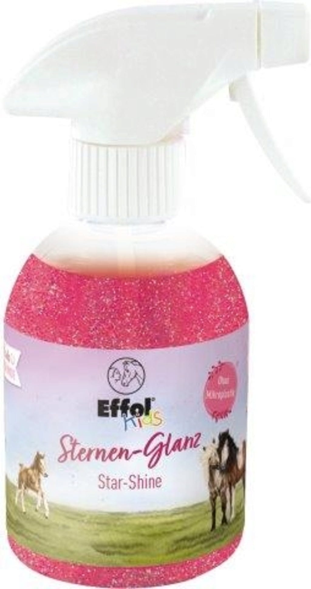 Effol Kids Star-Shine är en särskilt långvarig glitterspray för hästens päls och tagel. Produkten kan lätt borstas ut igen. Små, ofarliga glitterpartiklar och en läcker hallondoft säkerställer en fantastisk specialeffekt.