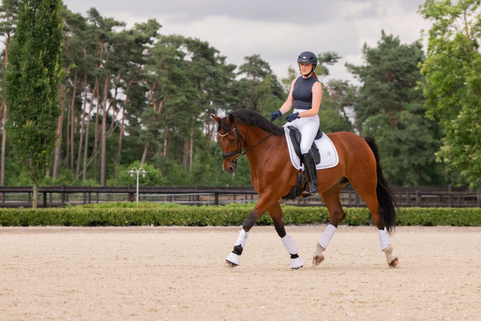 Benskydd Softshell Jewel kombinerar en smutsavvisande ovansida med en mycket ventilerande meshundersida. Den visuella höjdpunkten är de gnistrande Jewel-kardborrebanden som är perfekt matchade med kollektionens schabrak och får din häst att glänsa under träningen.