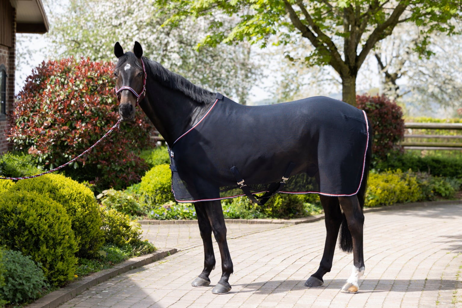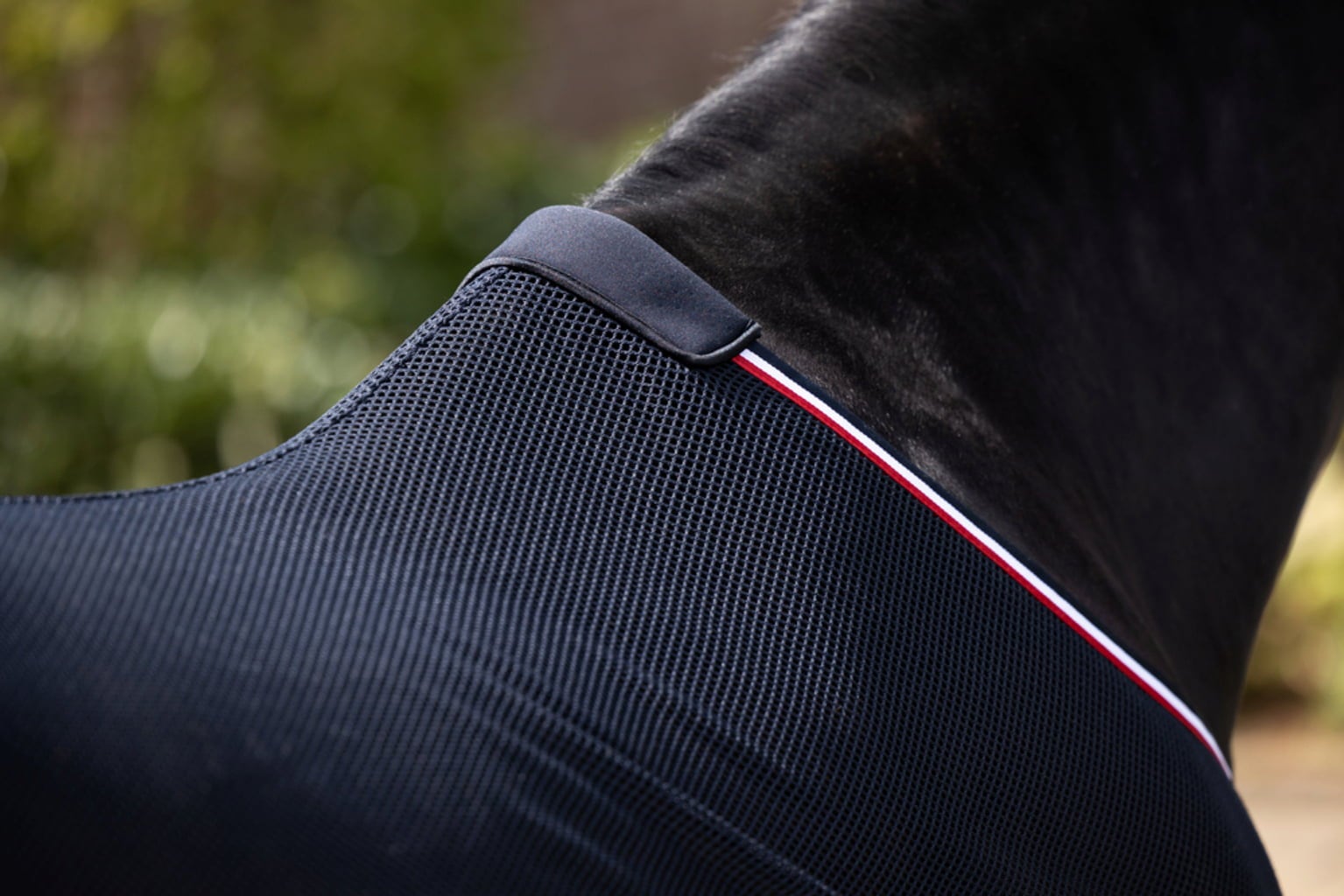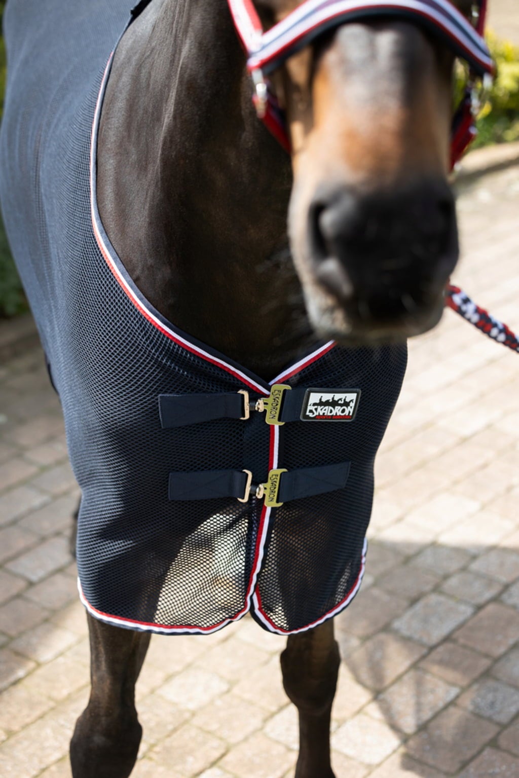 Eskadron flugtäcke Dura är det perfekta valet när du vill ge din häst ett effektivt skydd mot insekter. Det täta polyestermaterialet gör täcket extra slitstarkt och hållbart. Den generösa passformen med djupa sidor ger god komfort och rörelsefrihet. Tack vare dubbel bröstknäppning och avtagbara kryssgjordar kan täcket enkelt justeras för bästa möjliga passform – praktiskt och säkert i vardagen.