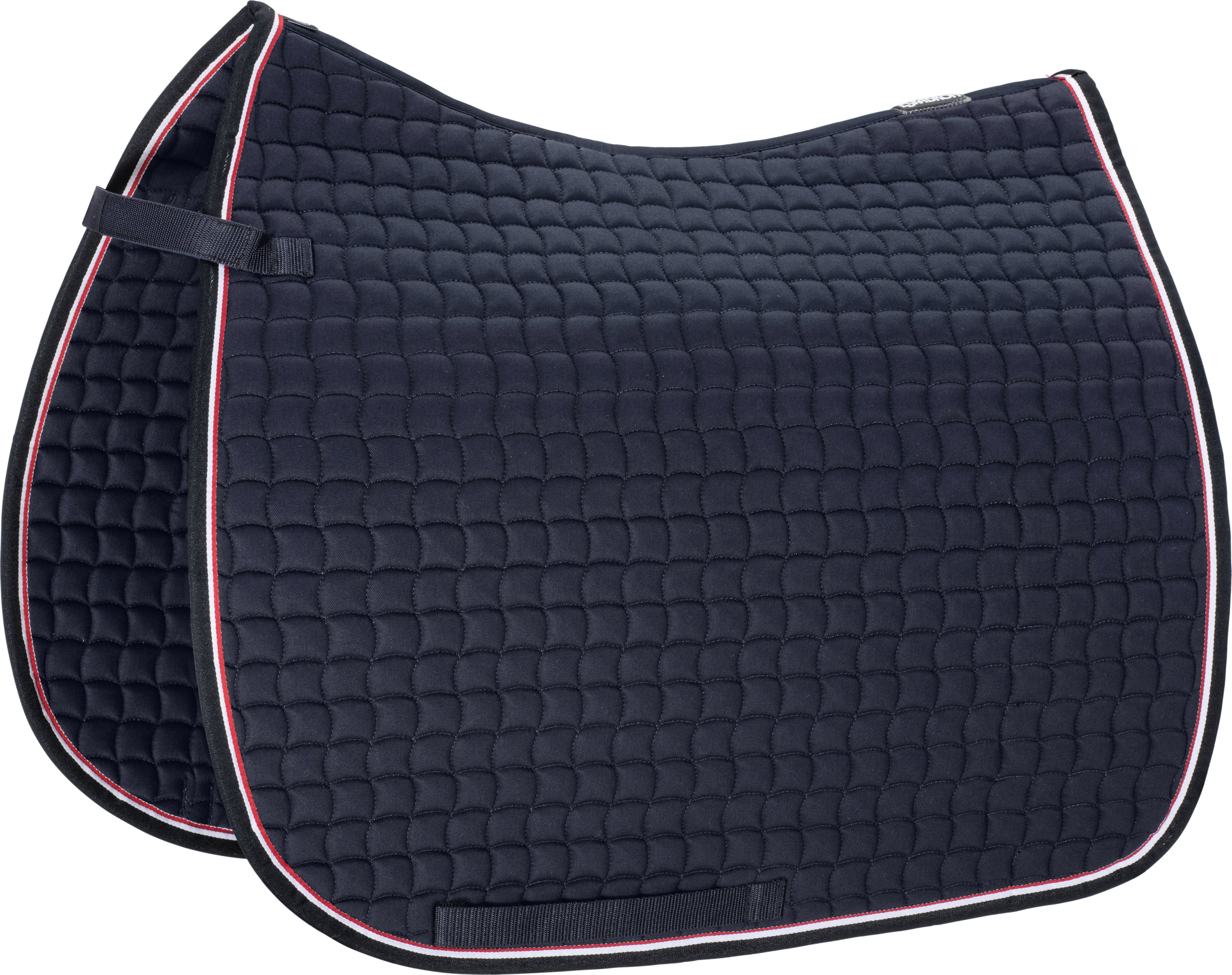 Ge din häst maximal komfort under träning eller ridning med Eskadron Cotton-sadeldynan. Det högkvalitativa yttermaterialet i bomull ger en behaglig andningsförmåga, medan det formstabila inlägget i poly/foam försiktigt förhindrar tryckpunkter. Sadelunderlägget imponerar med sitt robusta utförande och sin klassiska design - en pålitlig följeslagare i vardagen.