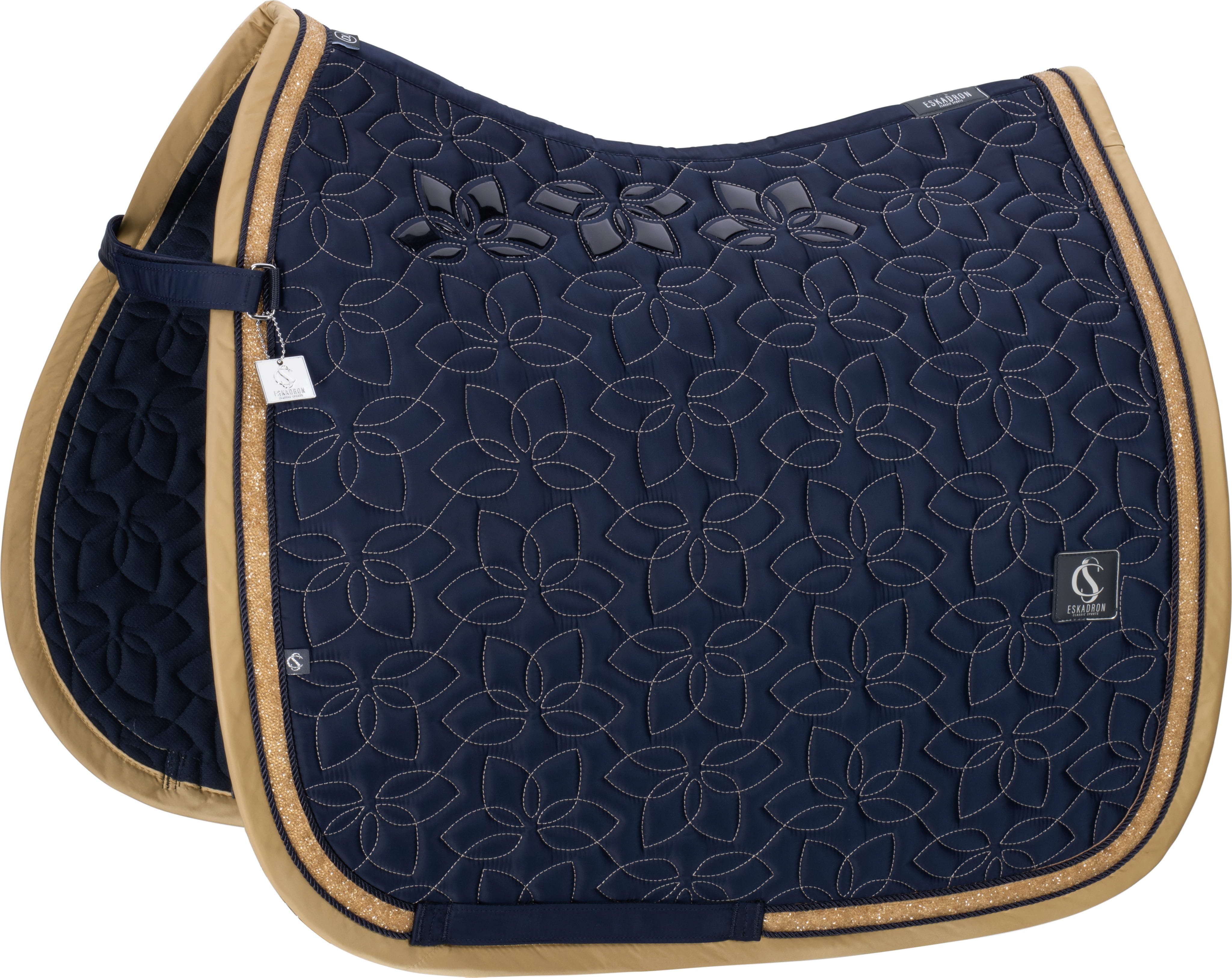 Skapa dynamik i din ridning med schabrak Glossy Jewel Contrast. Den markanta kontrastquiltningen på det eleganta glossy-materialet ger en modern och sportig känsla, medan infattade Jewelstenar gnistrar i varje rörelse. Antislip-silikon och Innostrap-systemet ser till att modellen ligger perfekt under sadeln i alla gångarter.