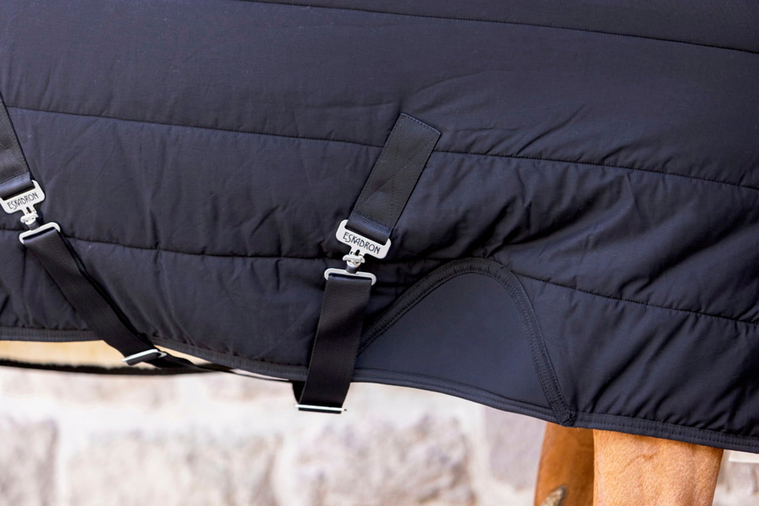 Ge din häst behaglig värme och skydd i stallet med stall- och undertäcket från Eskadron. Täcket är tillverkat av högkvalitativ bomull och har ett mjukt FauxFur-foder på insidan. Med 100 g fyllning kombinerar det lätthet med god rörelsefrihet. Genomtänkta detaljer som justerbar bröstdel med T-spännen, avtagbara kryssgjordar och elastiskt axelparti ger optimal passform och minimerar risken för skav. Den smala kragen i FauxFur skyddar varsamt halsområdet.