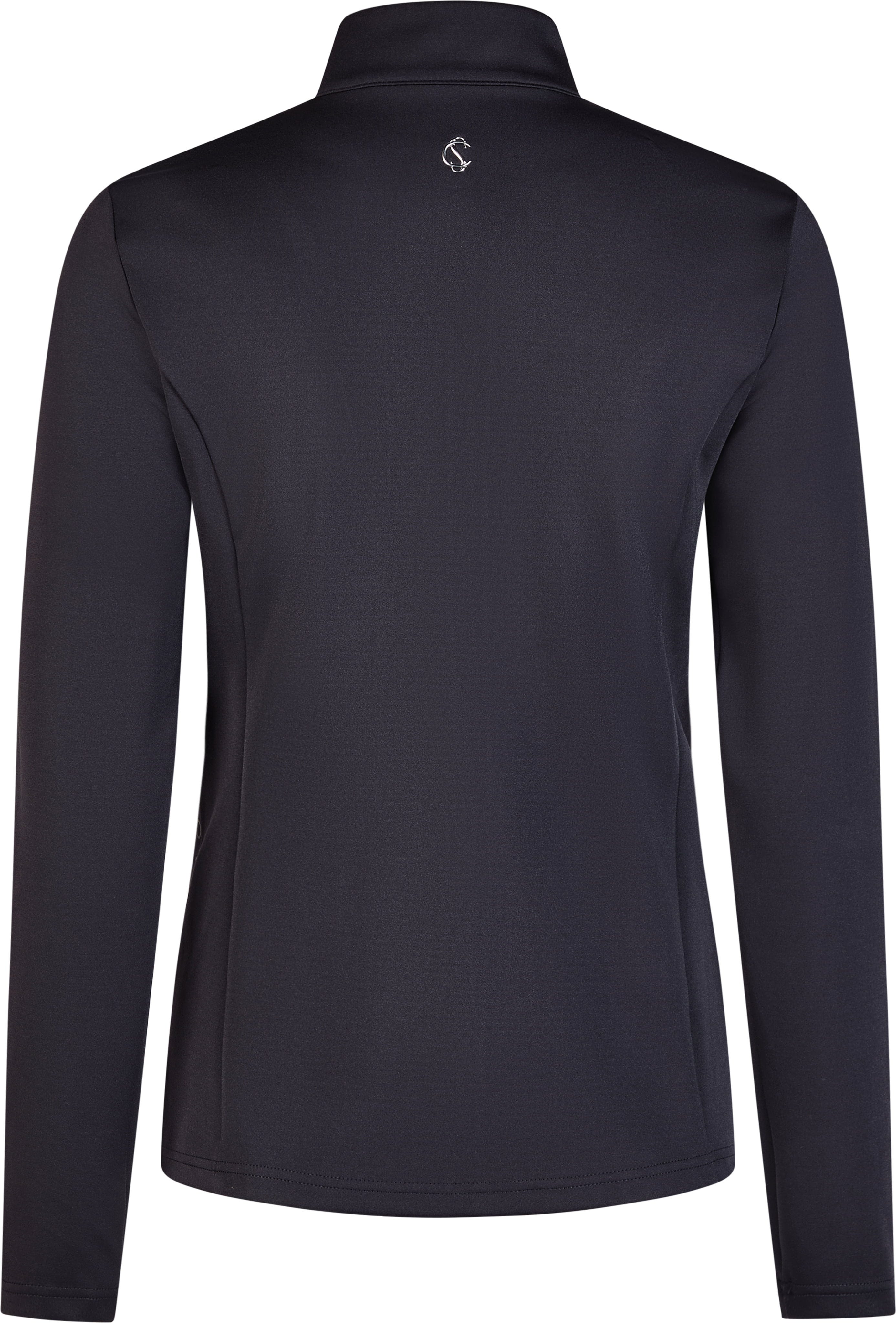Sportig stil möter funktion: zip-tröja i flexibel 4-way tech-jersey ger hög komfort med sin ståkrage och praktiska fickor med dragkedja. Den smala passformen och de sidoplacerade texterna gör den till ett riktigt blickfång under varje träningspass i sadeln.
