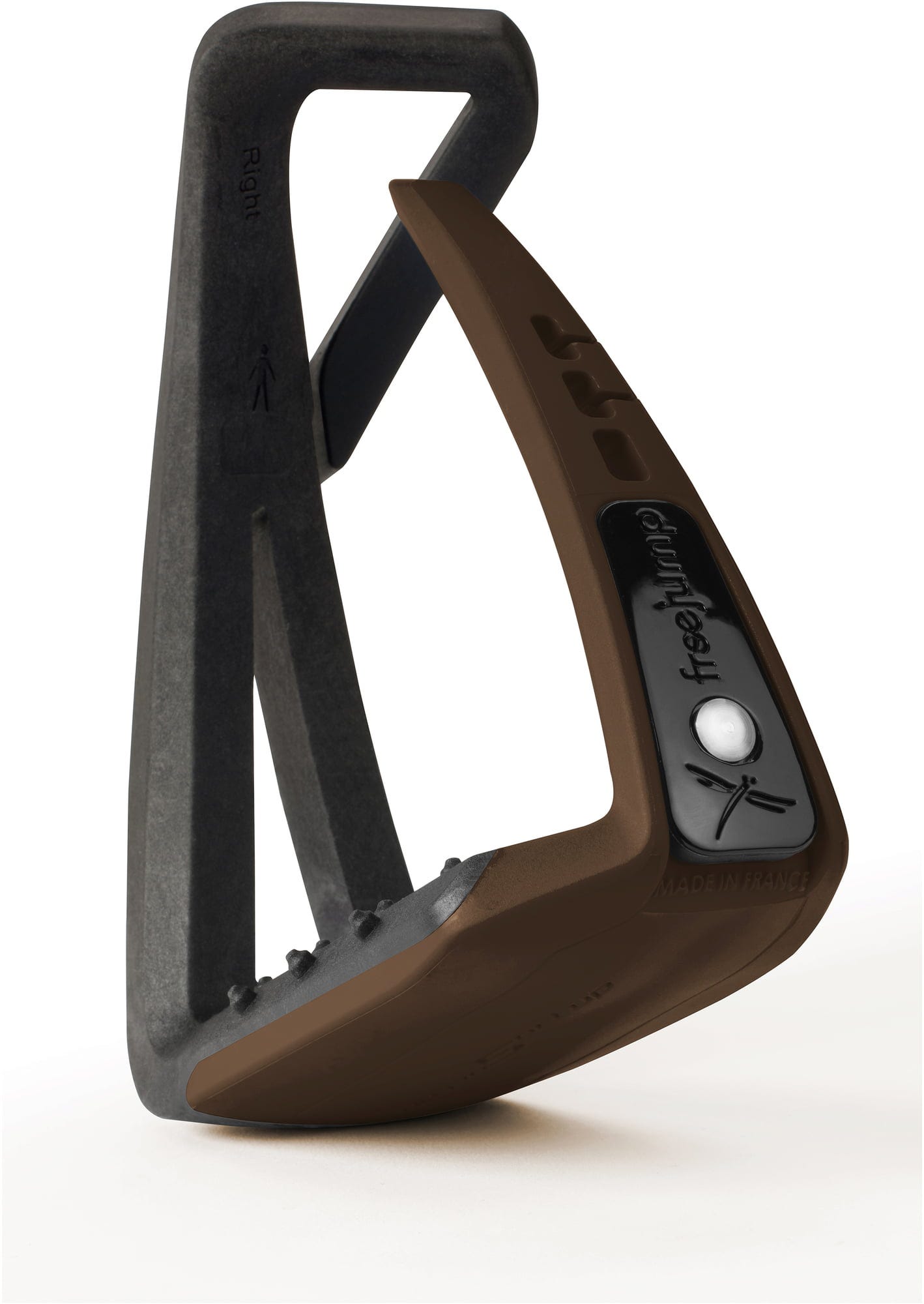 Resultatet av 2 års utvecklingsarbete med toppstjärnorna Eric Navet, Rodrigo Pessoa och Ludger Beerbaum är en öppen ögla som stigbygelns läder passerar genom. Den optimerade vinkeln på öglan ger en bättre fotposition och förflyttar därmed tån något inåt.