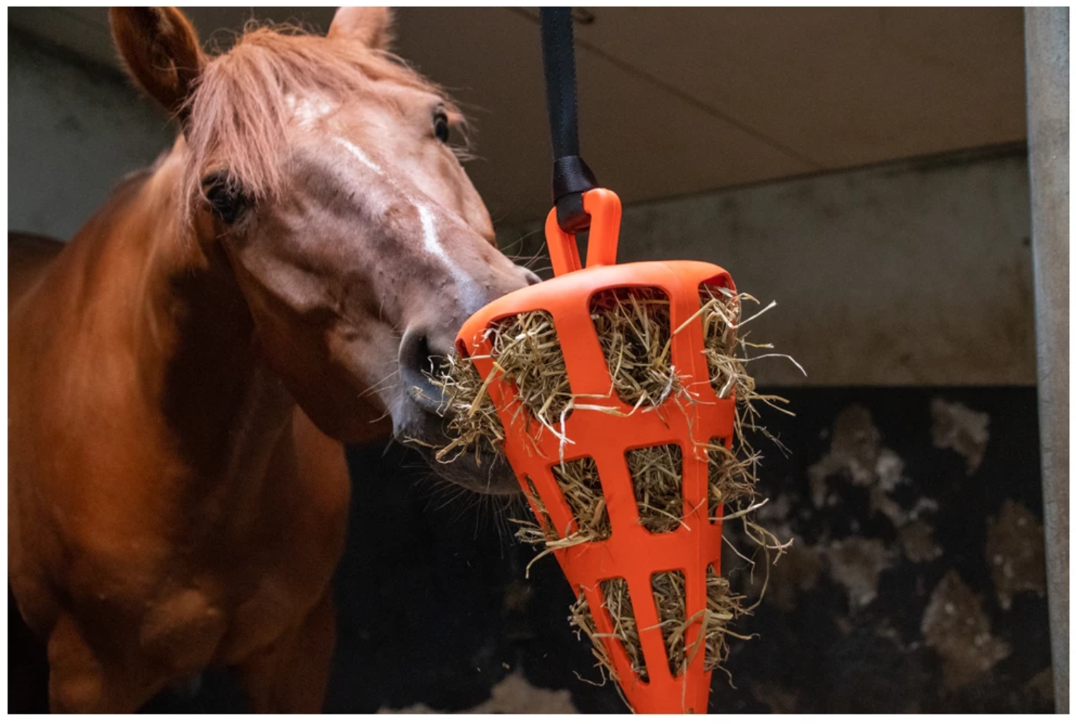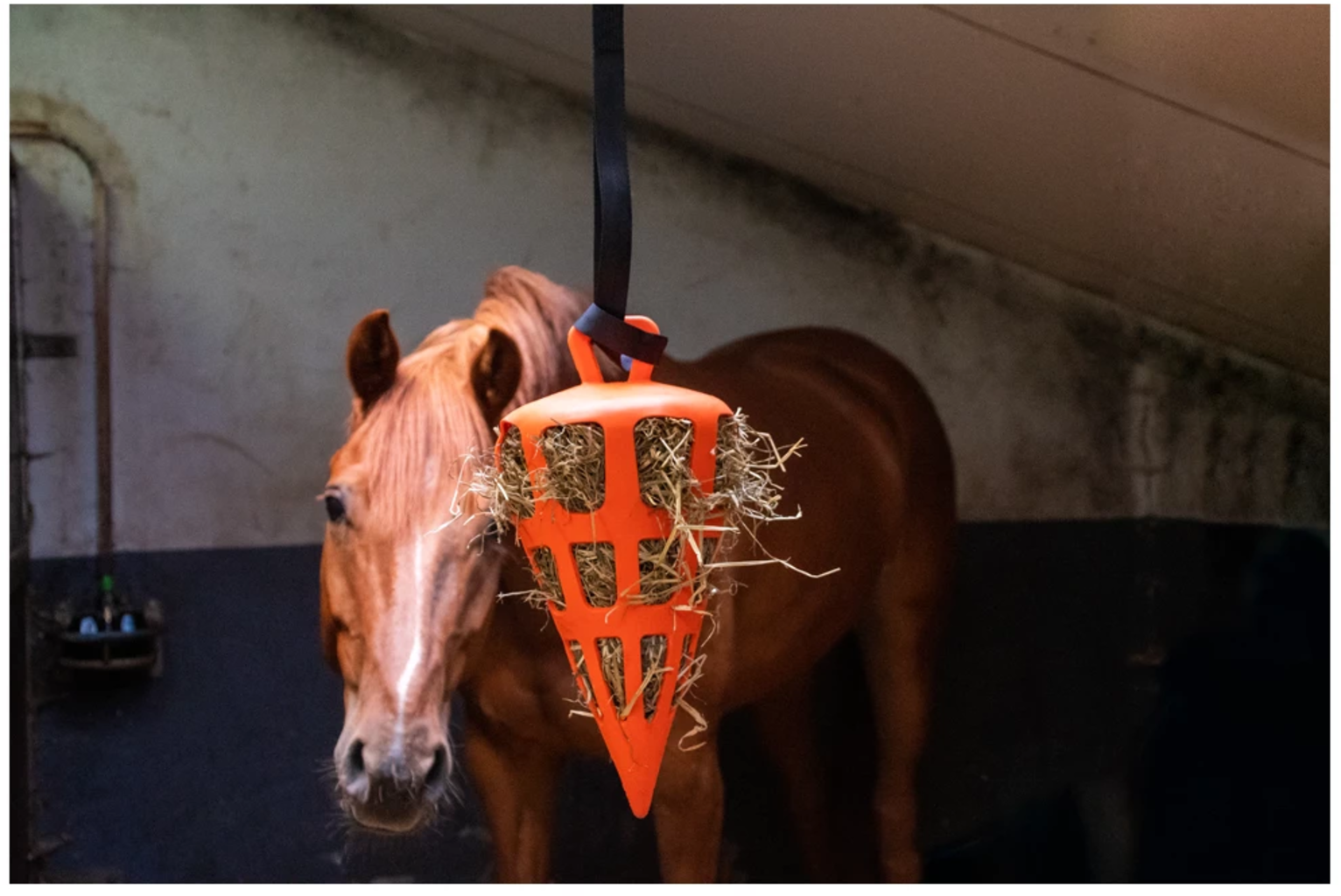 Tråkigt foder är ett minne blott – med Hay Slowfeeder Fun and Flex skapar du variation i din hästs foderrutin! Fyll den flexibla moroten av 100 % naturgummi med hö, örter eller krispiga grönsaker och häng upp den i stallet, på betet eller i transporten med det medföljande nylonrepet. Ger både sysselsättning och långsam hökonsumtion – perfekt mot tristess!