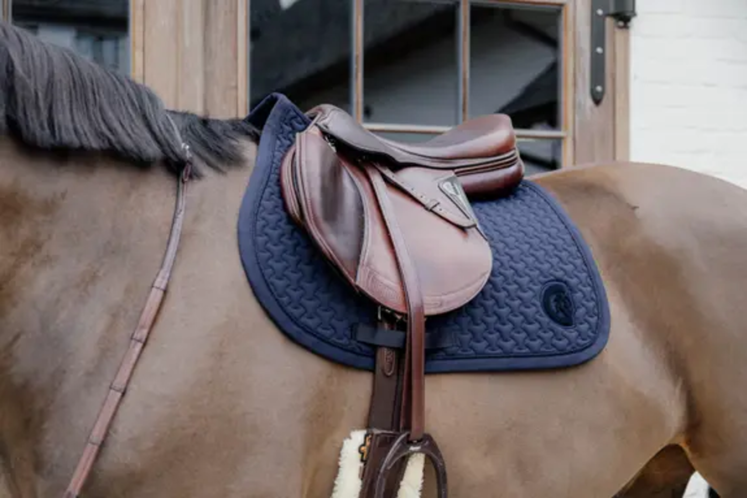 Den här sadelpaden kombinerar de utmärkta funktionella egenskaperna hos Kentucky med uppmärksamhet på visuella detaljer. Särskilt anmärkningsvärt är den unika quiltningen, som är fodrad med en andningsbar bomullspolyesterblandning. Detta gör att tyget absorberar svett och fukt ännu bättre. Tonala detaljer, som 3D-logotypen i det nedre vänstra hörnet, garanterar stilsäkerhet.