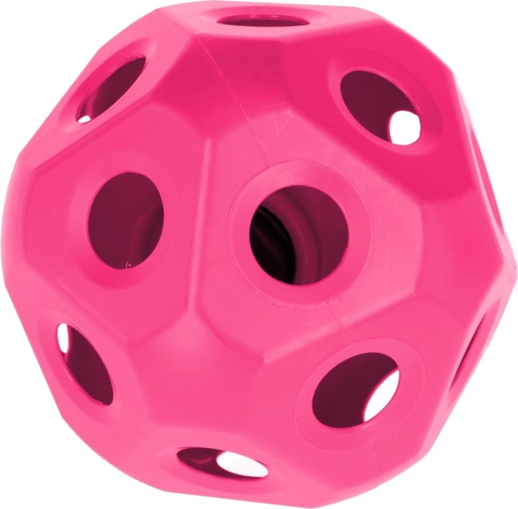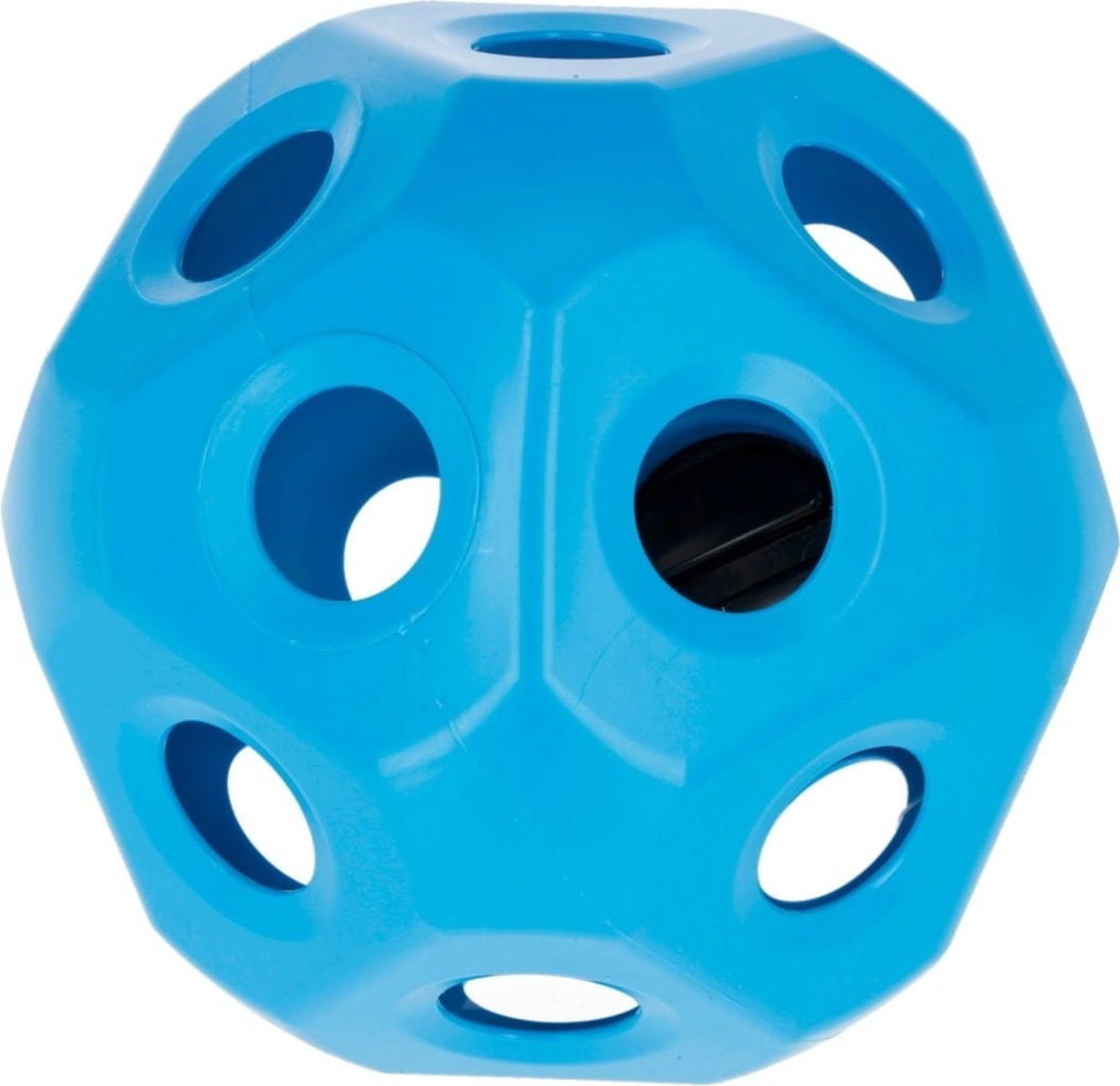 Mångsidig foderboll som även kan hängas i ett rep eller en kedja. Kan enkelt användas i stallet, paddocken eller på betet. De 19 utfodringsöppningarna gör den idealisk för grupphållning. Lätt att fylla tack vare den 116 mm stora påfyllningsöppningen med skruvlock. Rymmer upp till 3 kg hö.
