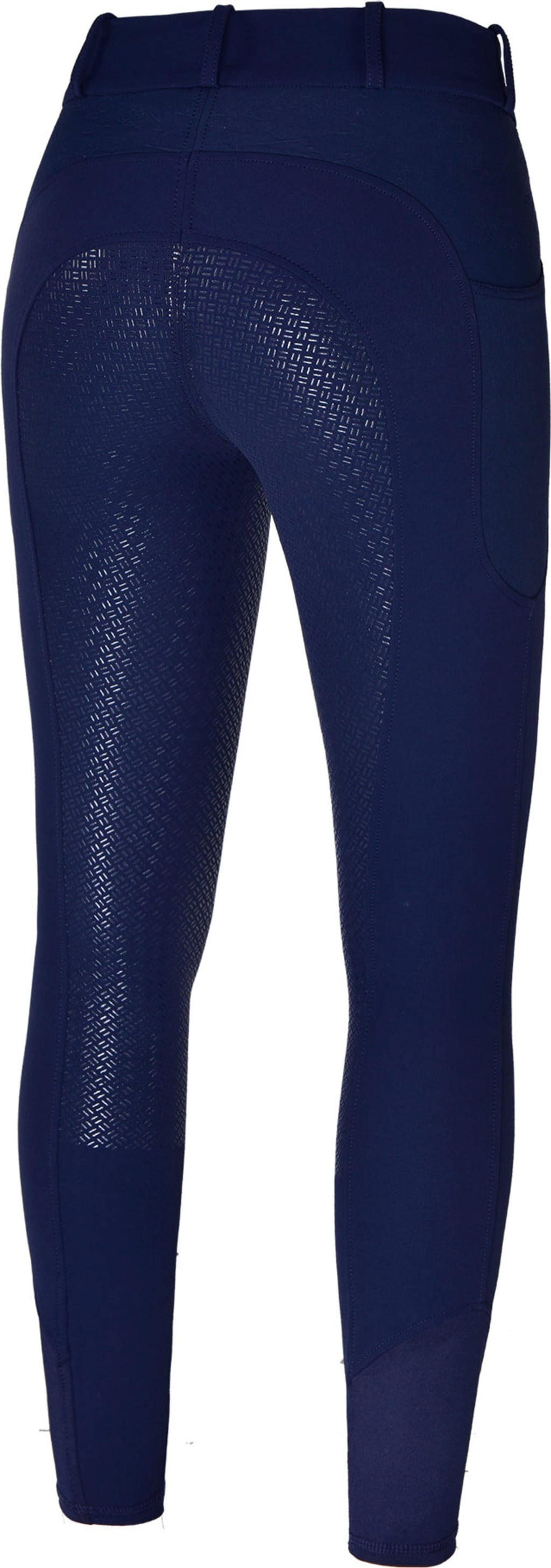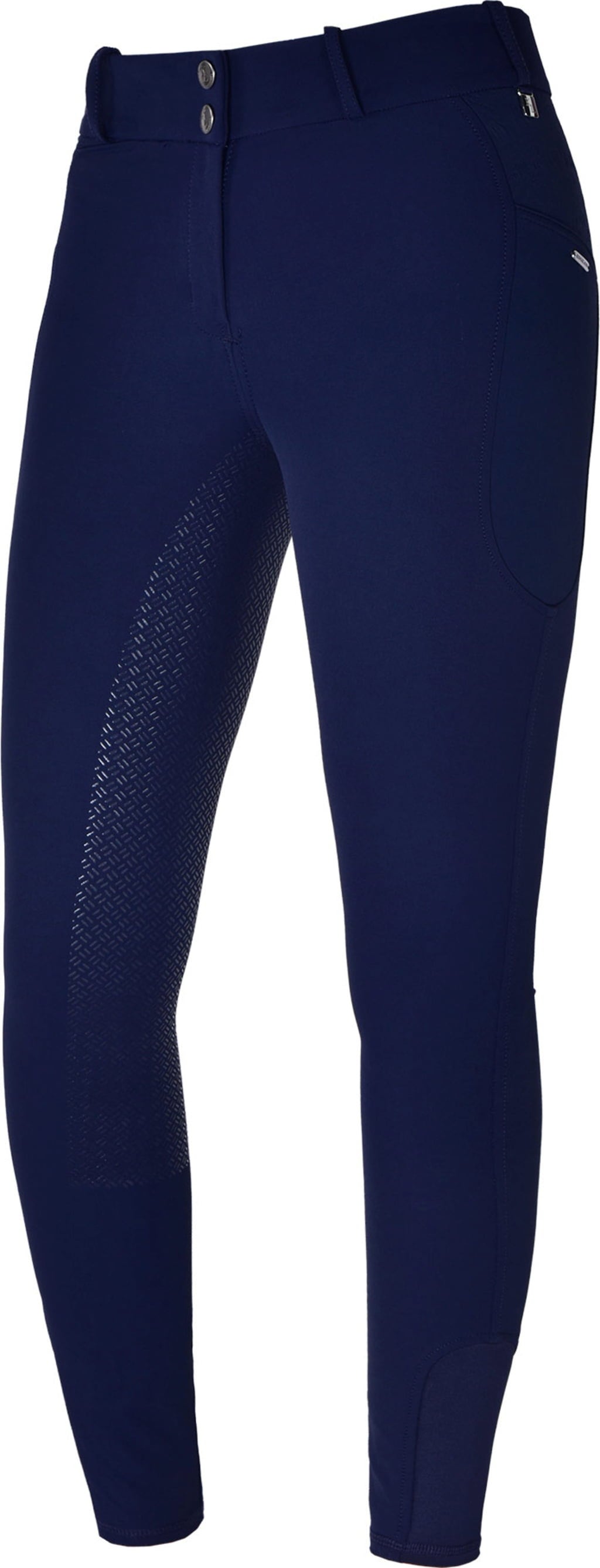 Lättskött ridbyxa i bekvämt funktionsmaterial. Vatten-, damm- och fettavvisande. Kraftig 4-vägsstretch. Utrustad med knee-/full-grip, mobilficka, två knappar och hällor. Logotryck på bakre oket och sidorna.