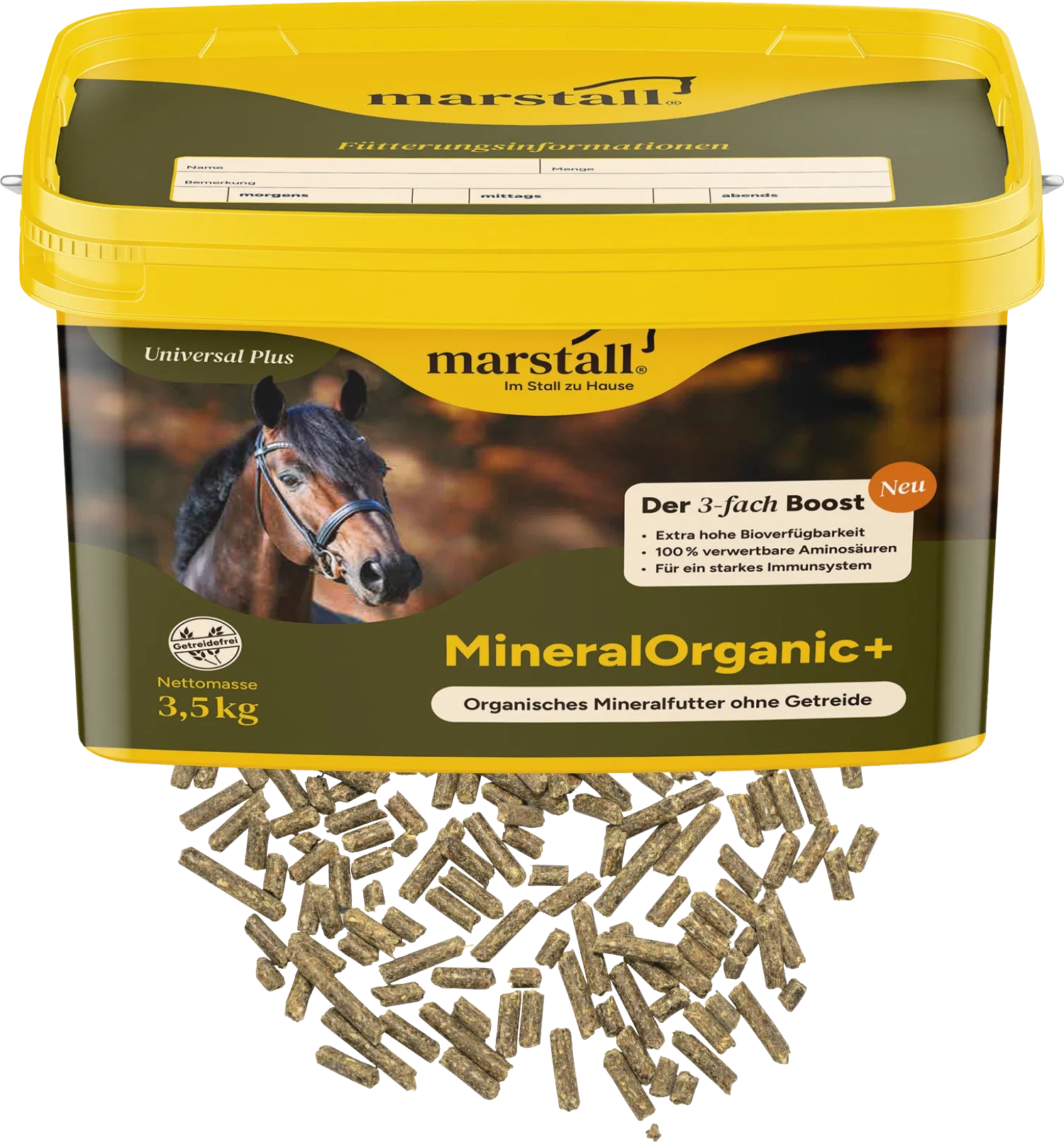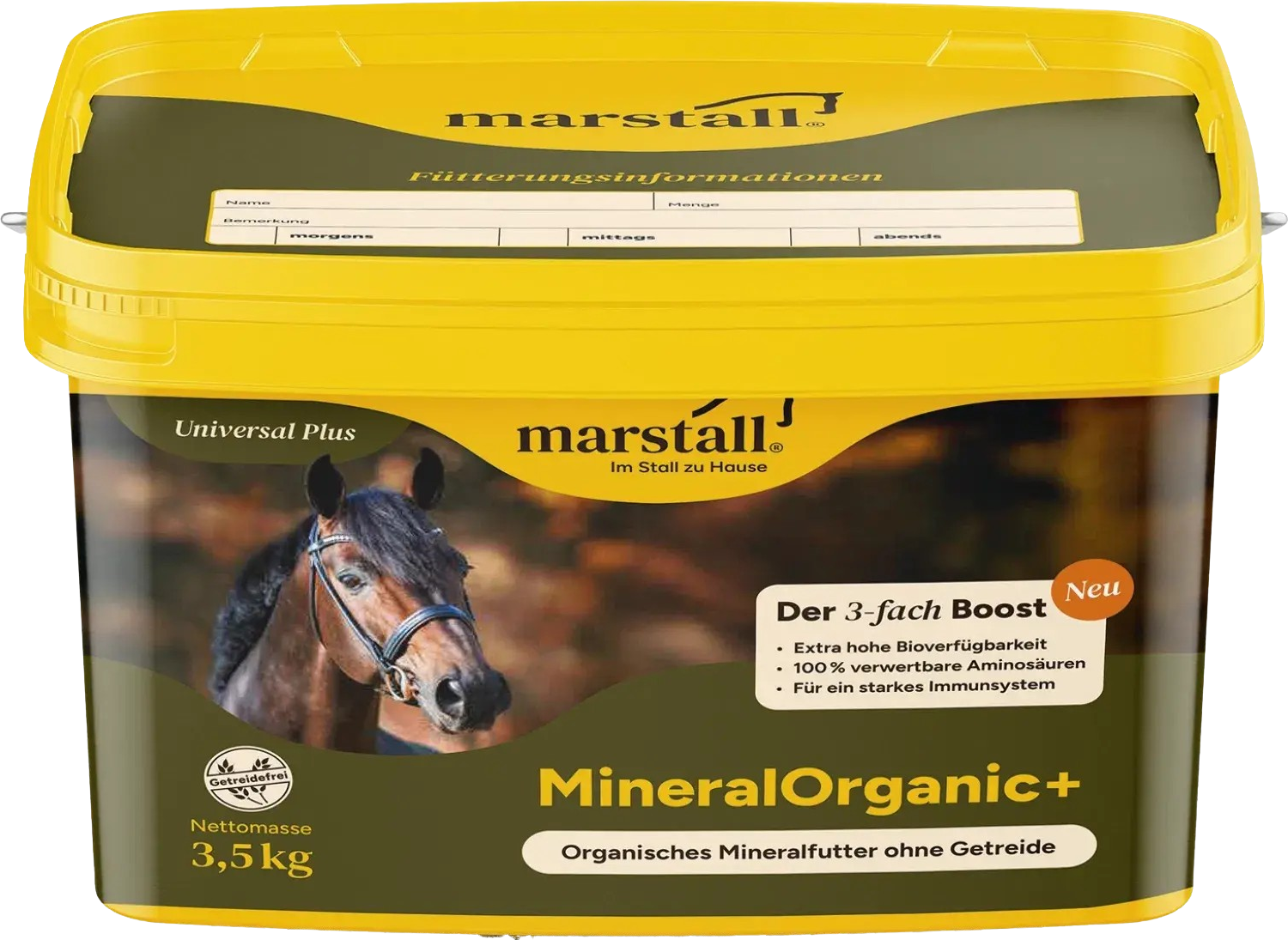 Vill du ge din häst optimal näring året runt utan att belasta dess organism med onödiga fyllnadsmedel? Med Marstall Mineral Organic+ väljer du en värdefull organisk källa till näringsämnen. Spannmål och melass har medvetet utelämnats från det välsmakande och innovativa receptet för att ge din häst ett praktiskt tillskott till det dagliga grovfodret.