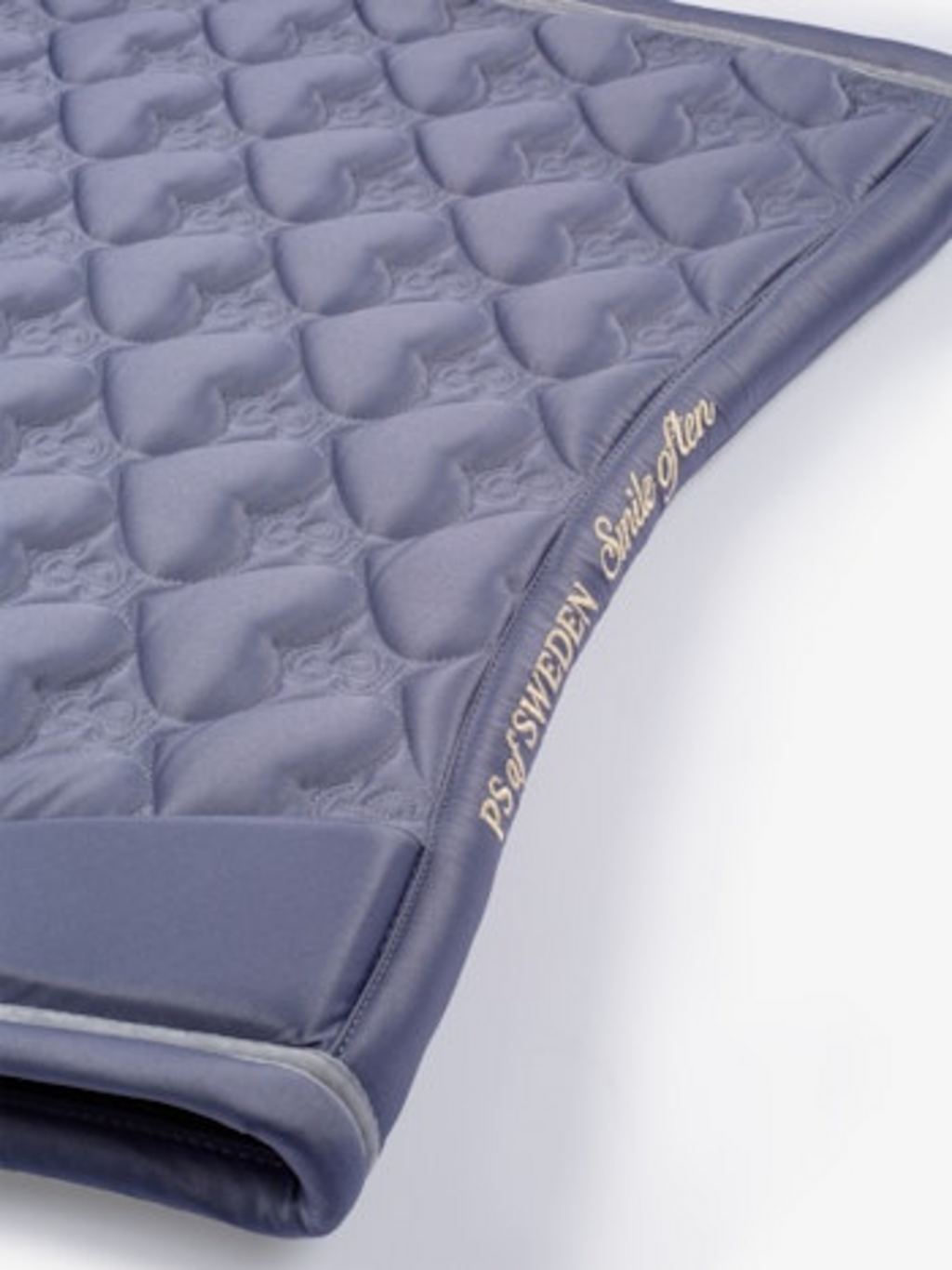 Det limiterade dressyrschabraket Heart sprider romantik och elegans i dressyrvierecket. Det iögonfallande hjärtquiltmönstret med invävt PS-logotyp gör det till en riktig blickfångare, medan det dekorativa sammetbandet längs kanten tillför en exklusiv touch. Ett personligt broderat citat längs ryggraden ger schabraket extra karaktär.