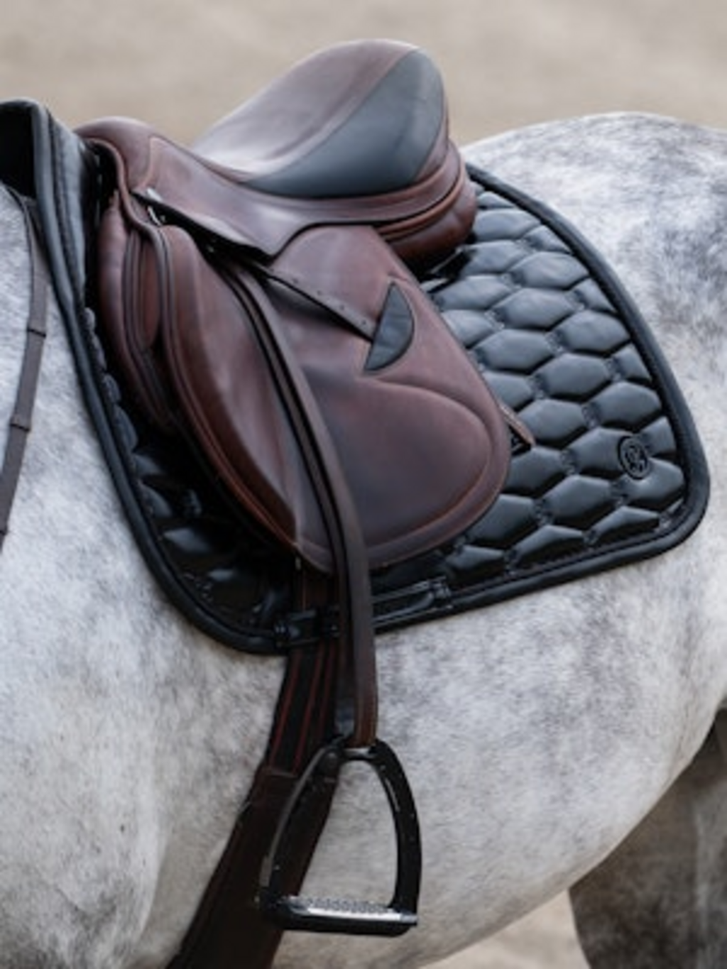 Dazzling Metallic hopp-schabrak kombinerar en elegant metallisk glans med smart funktion. Den anatomiska designen med extra utrymme vid manken ger hästen full rörelsefrihet, medan den medeltjocka vadderingen ger en stabil passform även under hoppning.