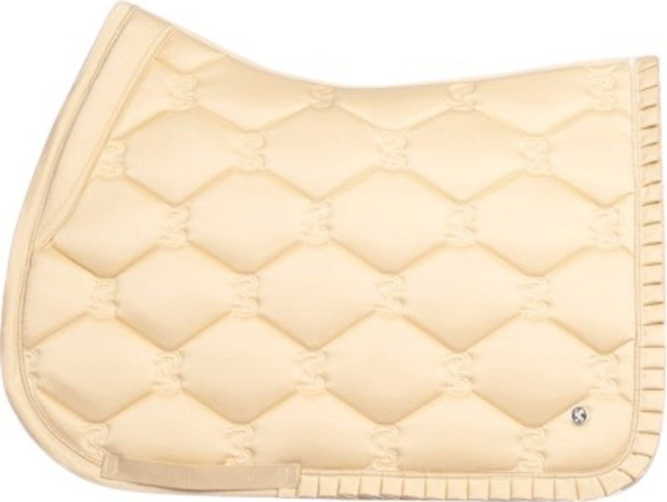 Jump Ruffle-schabraket från PS of Sweden kombinerar elegant design med funktionella detaljer. Den anatomiska formen ger extra utrymme vid manken och främjar hästens rörelsefrihet. Den medeltjocka, stötdämpande stoppningen och de integrerade stoppkuddarna håller schabraket säkert på plats och ger sadeln extra stabilitet.