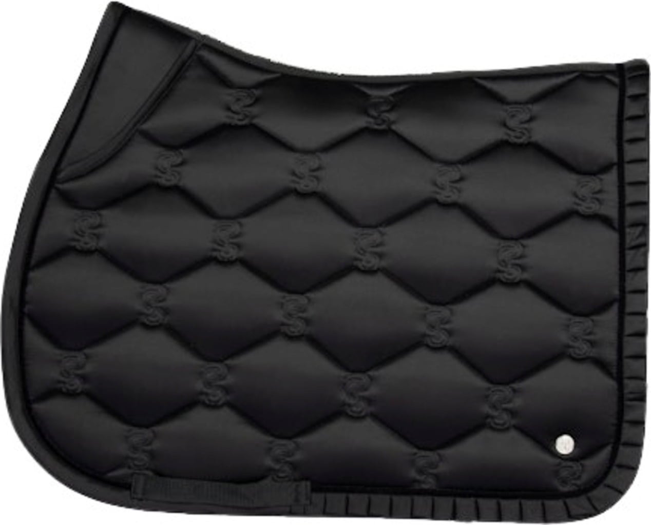 Jump Ruffle-schabraket från PS of Sweden kombinerar elegant design med funktionella detaljer. Den anatomiska formen ger extra utrymme vid manken och främjar hästens rörelsefrihet. Den medeltjocka, stötdämpande stoppningen och de integrerade stoppkuddarna håller schabraket säkert på plats och ger sadeln extra stabilitet.