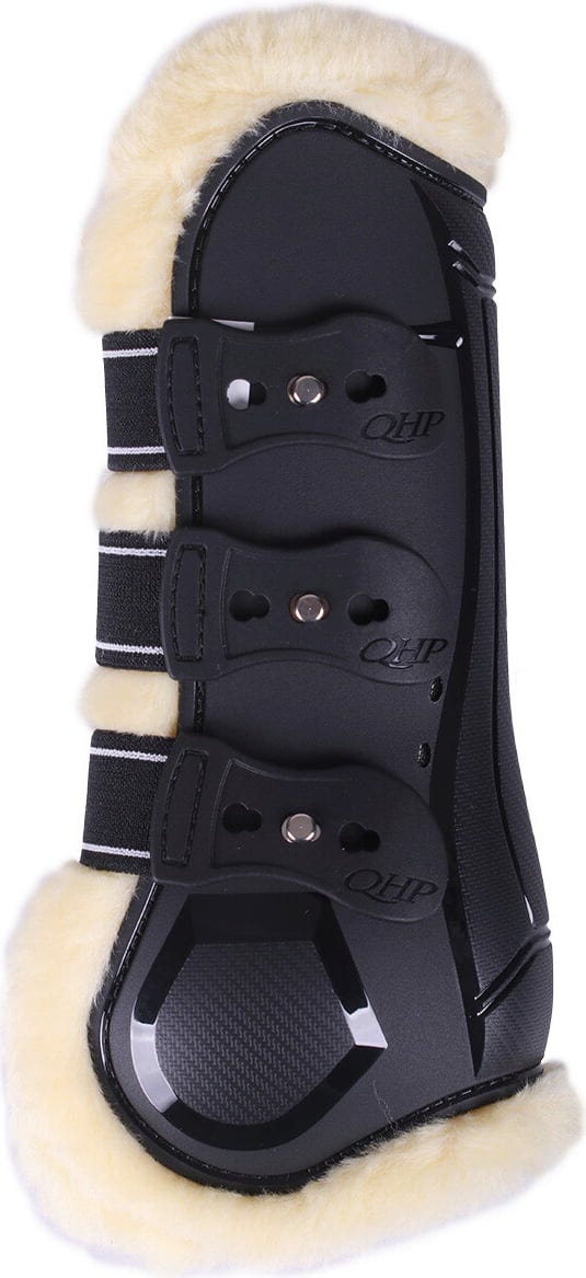 Dessa benskydd i stilrent svart är designade för att ge maximalt skydd och högsta komfort – ett perfekt val för hästar med känslig hud. Det mjuka fodret i konstpäls ligger skonsamt mot benet och skyddar effektivt mot stötar och slag.