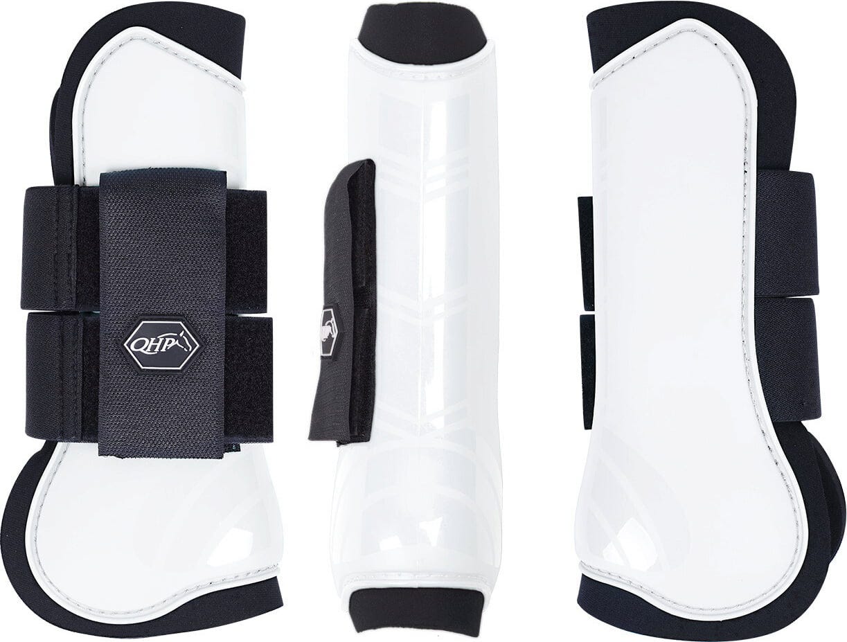 Detta set med två anatomiskt formade hårdskalade benskydd i klar vit färg är perfekt för att skydda din hästs ben under träning och tävling.