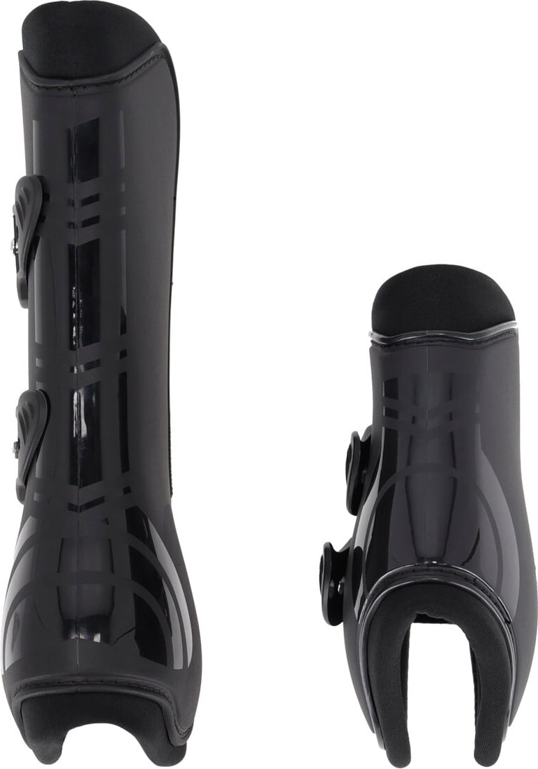 Skydden är anatomiskt formade och har ett slitstarkt yttermaterial av hårdplast (polyuretan) med matt finish och glänsande detaljer för en sportig look. Insidan är fodrad med mjukt neopren för hög komfort. Skydden är dessutom lätta och kan sättas på snabbt och enkelt tack vare elastiska snabbspännen – redo på några sekunder!