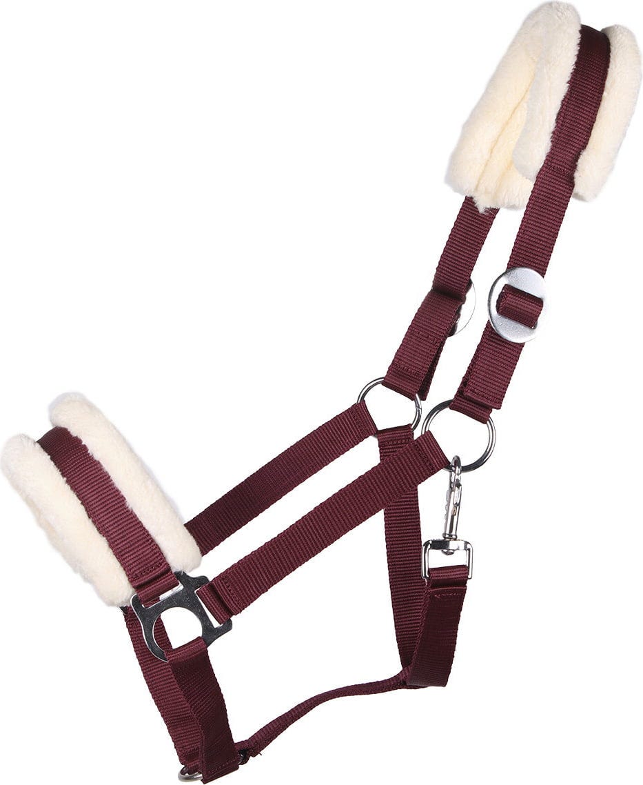 - Extra komfort: Nack- och nosremmarna är mjukt fodrade med syntetpäls för att förebygga skav – perfekt för känsliga hästar.