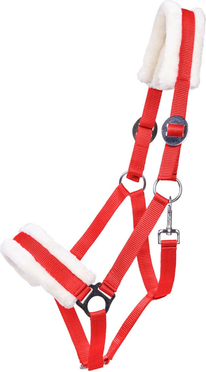 - Extra komfort: Nack- och nosremmarna är mjukt fodrade med syntetpäls för att förebygga skav – perfekt för känsliga hästar.