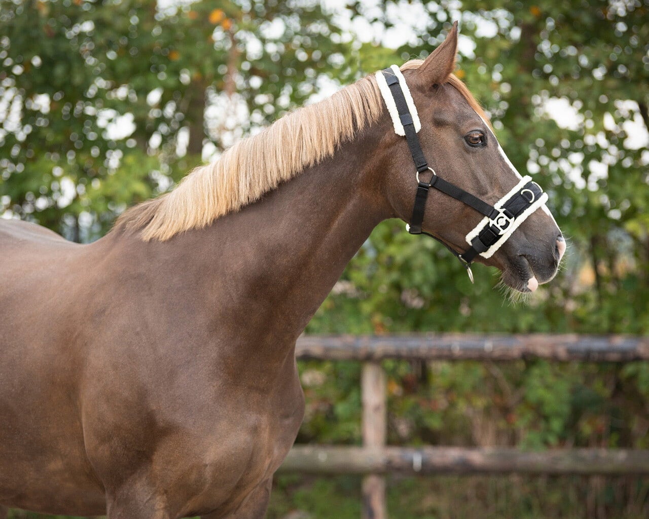 - Säker passform: Spännen vid hakrem, käkrem och nackstycke gör det enkelt att anpassa kapsonen exakt efter hästens huvudform.