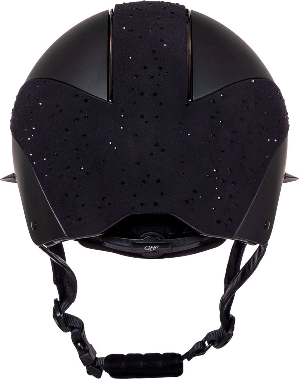 Ridhjälmen Ohio från QHP är en både bekväm och iögonfallande hjälm som kombinerar funktion och stil. Det gnistrande ytterhöljet med strassdetaljer drar blickarna till sig, och polovisiret ger både en snygg look och skydd mot starkt solljus. Hjälmen är även försedd med ett effektivt ventilationsgaller som håller huvudet svalt under ridpasset.