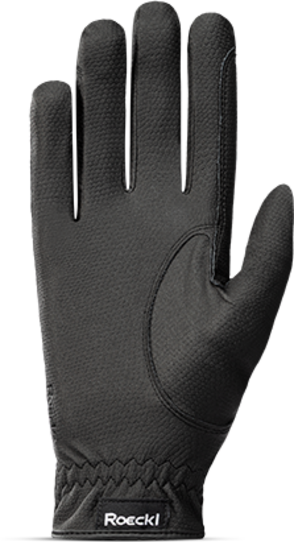 Kvalitetsmässigt imponerar ridhandsken med exklusivt ROECK-GRIP® på både ovan- och insida, vilket ger en smidig, elastisk och andningsbar känsla. Resultatet är ett säkert grepp och en fin, följsam kontakt med tygeln. Den robusta kardborrestängningen gör handsken snabb och enkel att ta på samt ger stabil passform runt handleden. Den är dessutom kompatibel med touchscreen.