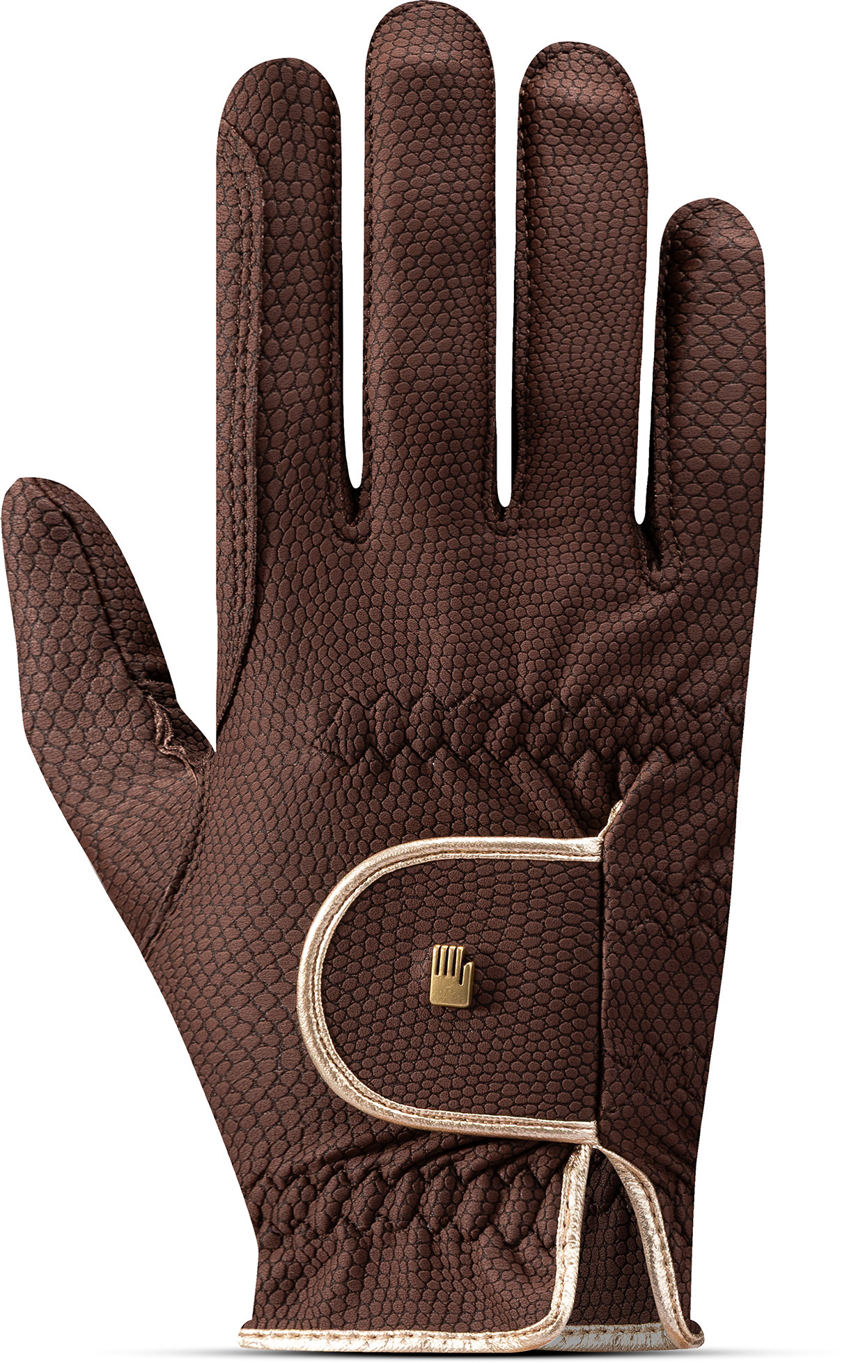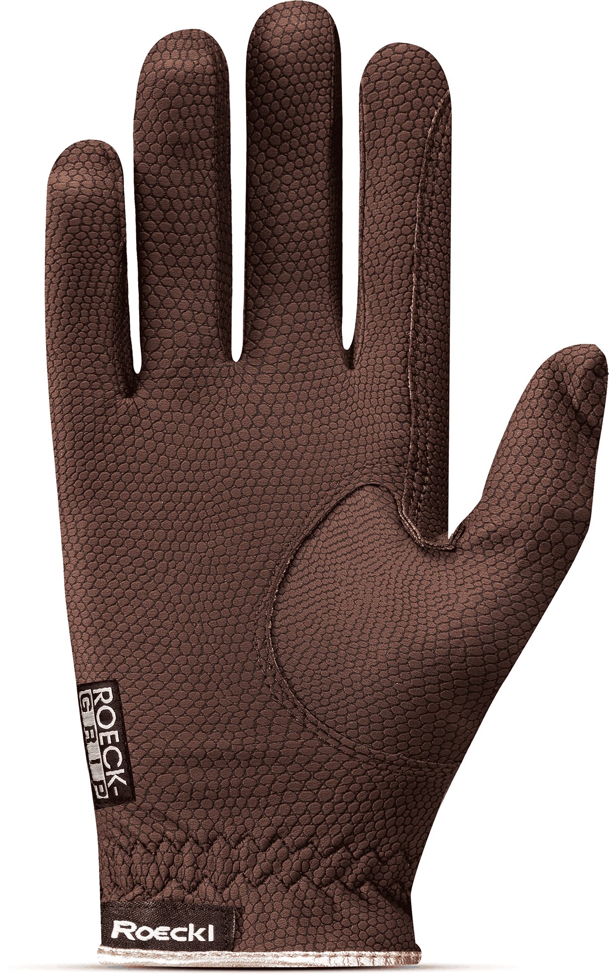 Denna ridhandske ser inte bara bra ut, utan övertygar också med sitt överlägsna material och slitstyrka. Det exklusiva materialet ROECK-GRIP® gör handsken andningsaktiv, elastiskt och smidig. Dessutom har ridhandskarna ett extremt grepp och bra känsla på tyglarna. Ridhandskarna är handgjorda med en maximal sömtolerans på en millimeter. Detta bidrar avsevärt till den höga kvaliteten.