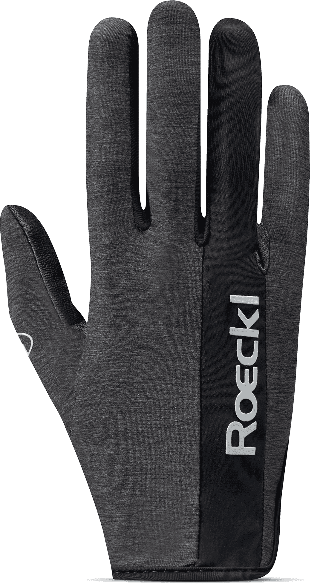 Vacker unisex ridhandske tillverkad av högkvalitativ italiensk lycra på handryggen. Lycran imponerar med sin iögonfallande melange-look, är extremt andningsbar och sitter tack vare sina elastiska egenskaper bekvämt runt händer och fingrar. På handflatorna används ett mjukt, halkfritt PU-material.