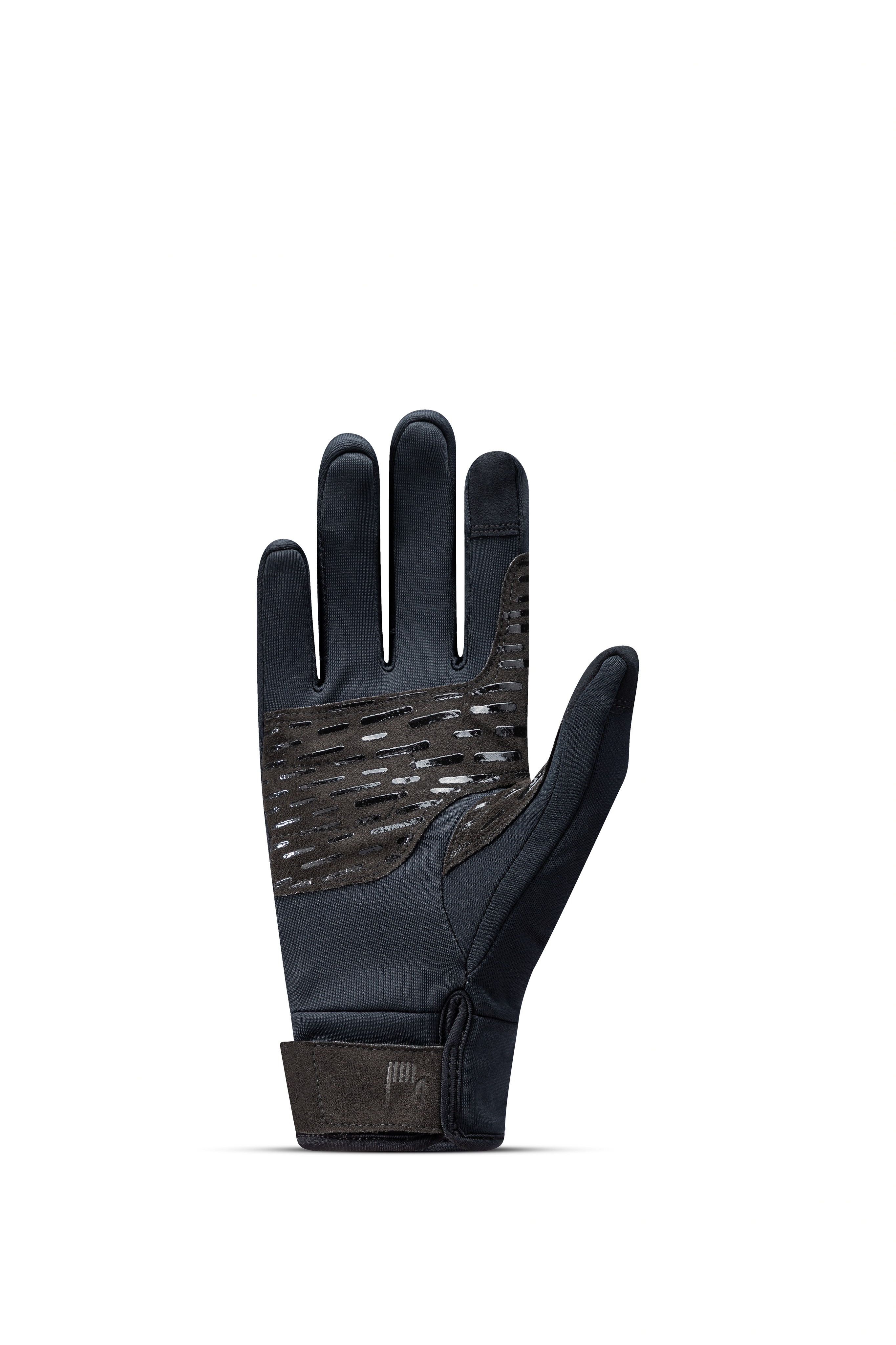 Nordheims vinterridhandske kombinerar en modern, sportig look med bekväma egenskaper. Det andningsbara ROECK-PROOF® ECO Denali softshell 3-lagerslaminatet på bakhanden skyddar dig mot vind och regn. I handflatan ger ECO.SENSE®-beslaget i kombination med silikonisering på handflatan och tummen bästa möjliga grepp. Det mjuka fleecefodret känns riktigt mysigt. Kardborreknäppningen hindrar värmen från att läcka ut. Handsken kan också användas för att styra pekskärmar utan problem.