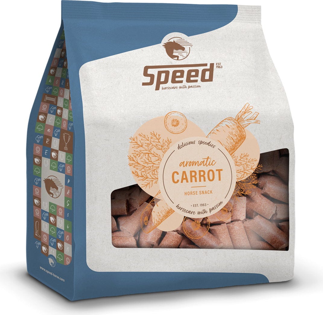 Den läckra doften och den härliga smaken av morot kommer snabbt att göra detta snack till din hästs favoritgodis. Jämfört med morötter eller äpplen håller SPEED läckra speedies också mycket längre och smular inte som till exempel torkat bröd. Speedisarna är lätta att förvara och redo att ha till hands.