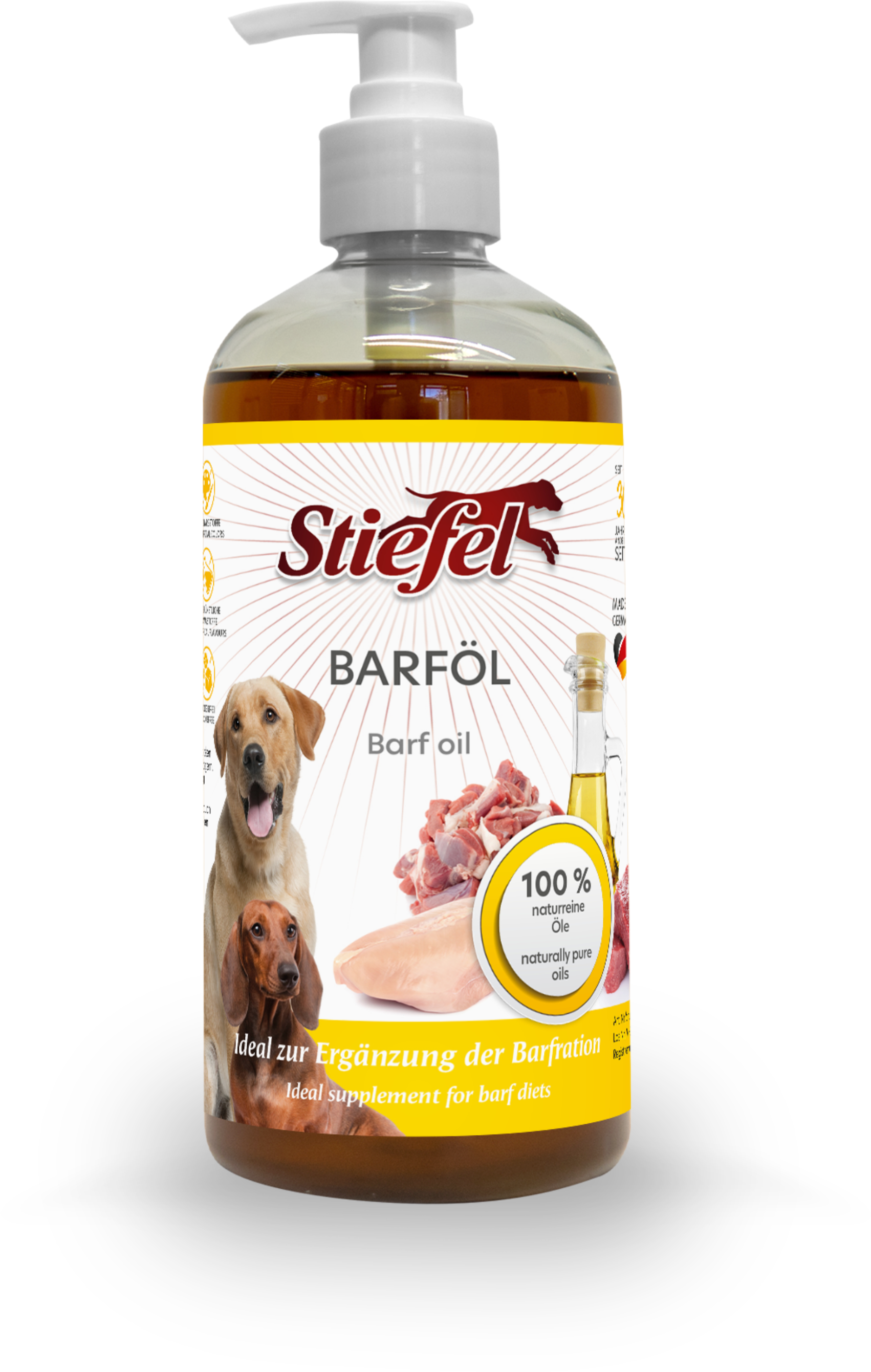 Stiefel BARF-olja är en högkvalitativ blandning av näringsrika oljor som kompletterar den dagliga BARF-ransonen. Stiefel BARF-olja kan bidra som tillskott till en balanserad kost.