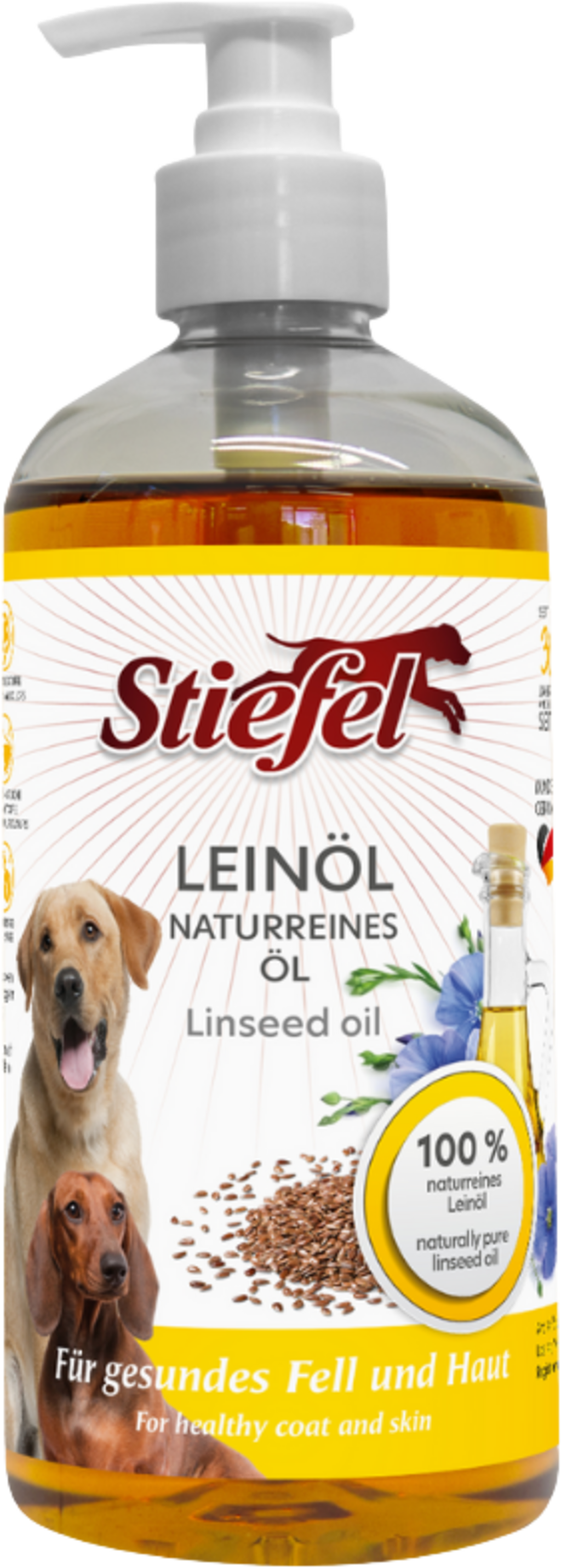 Stiefel linfröolja är ett kallpressat naturprodukt. Tack vare sin värdefulla sammansättning kan Stiefel linfröolja bidra till att stödja hundens hud och päls. Linfröolja kan även ringlas över fodret för att stödja en normal matsmältning.