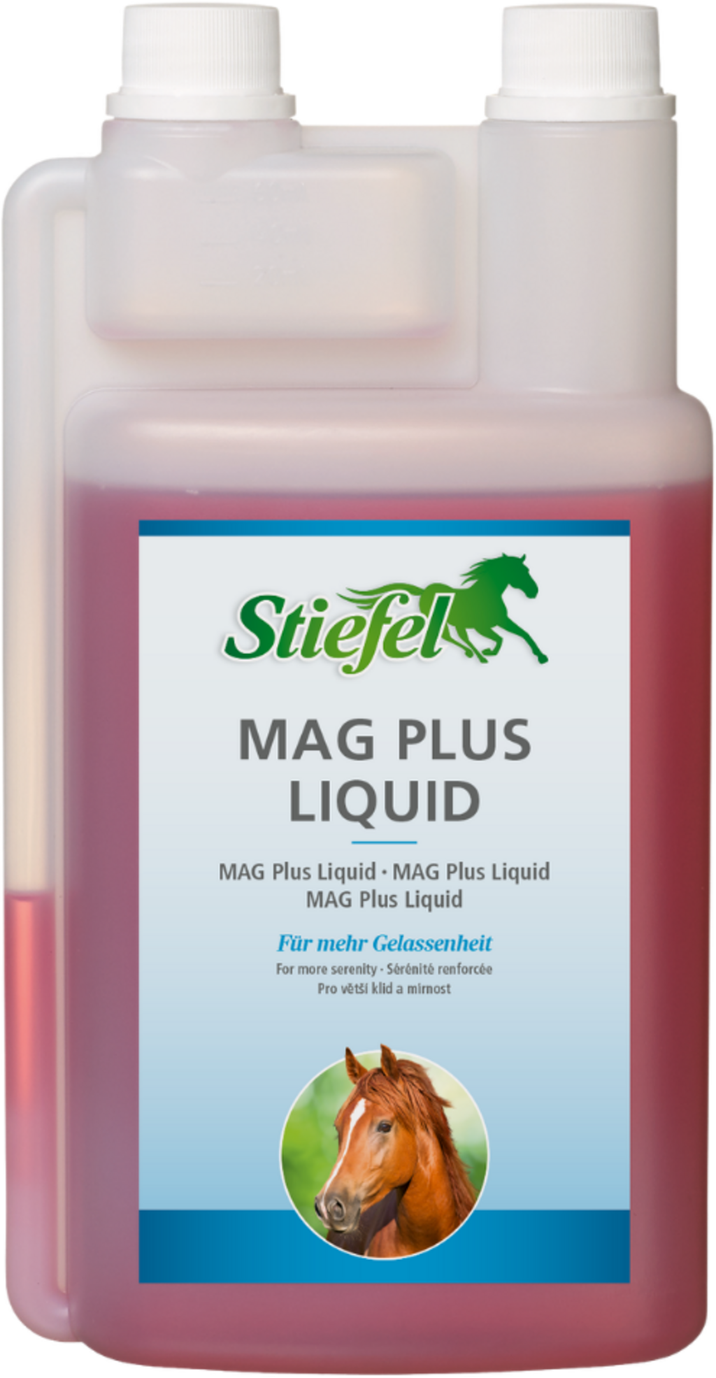 Stiefel MAG Plus Liquid är ett flytande dietfoder för att minska stressreaktioner och öka motståndskraften. Den effektiva kombinationen av magnesium, tryptofan och zink kan ha en positiv effekt på nervösa samt snabbt irriterade och stressade hästar vid foderrelaterade bristsymptom. Detta kan ha en positiv inverkan på motståndskraft, koncentration och prestationsvilja. Om hästen är stressad behövs stora mängder magnesium, eftersom magnesium som motsvarighet till kalcium kan normalisera den ökade hjärtverksamheten. När stresshormoner som kortisol och adrenalin frigörs, utsöndras också ökade mängder magnesium. Om hästens stressnivå ökar, ökar också förbrukningen och därmed behovet av magnesium i hästens kropp. Magnesiumbrist kan dessutom förstärka effekterna av stress. B12-vitaminet kan stärka nerverna och främja koncentrationen.