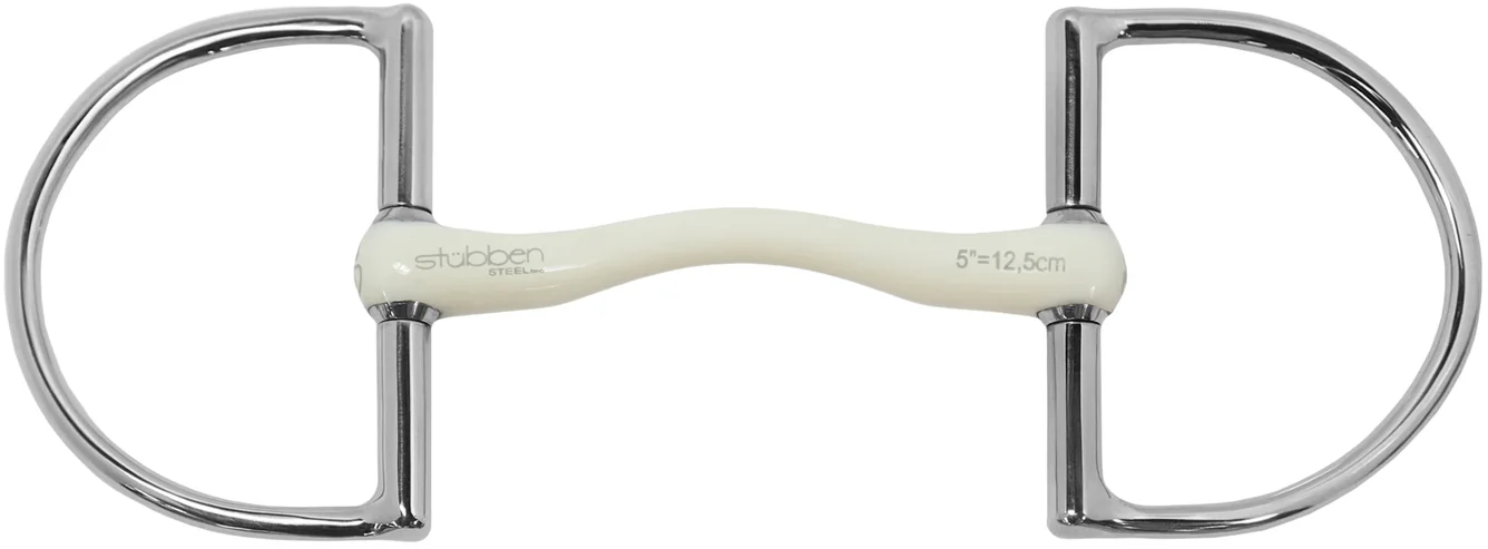 Materialet i munstycket ger en mjuk kontaktyta, medan de robusta ringarna i rostfritt stål säkerställer nödvändig stabilitet och hållbarhet. Designen förhindrar också att munhörnen kläms, eftersom anslutningspunkterna mellan ringen och munstycket är ordentligt inneslutna. Den här produkten är särskilt lämplig för ryttare som vill ha en tydlig inramning och direkt överföring av hjälper med en flexibel textur i munnen.