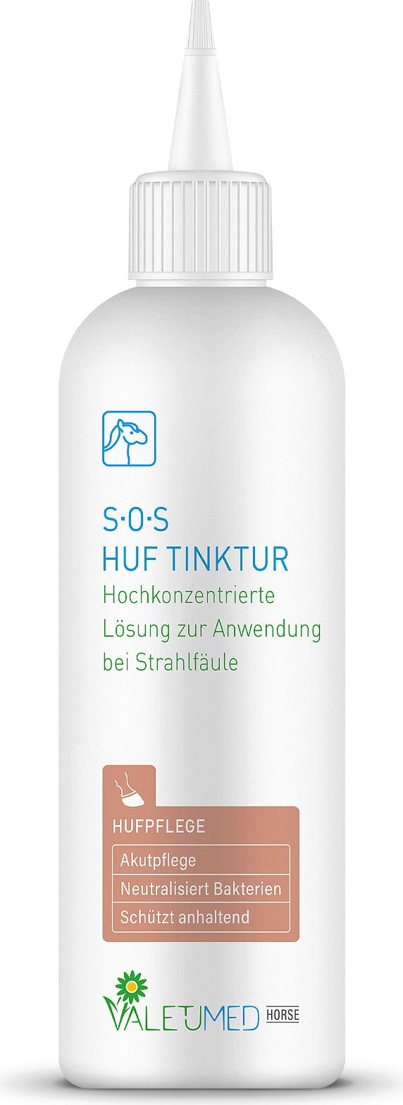 Samtidigt neutraliserar den syrabaserade tinkturen negativa yttre påverkan som ammoniak och svavelväte. Dessa ämnen kan särskilt under fuktiga förhållanden påverka hornet negativt. Vätskan fäster mycket bra på hoven och ger ett långvarigt skydd mot dessa yttre faktorer.