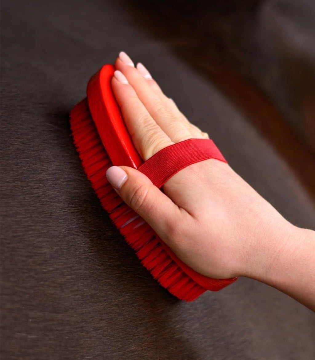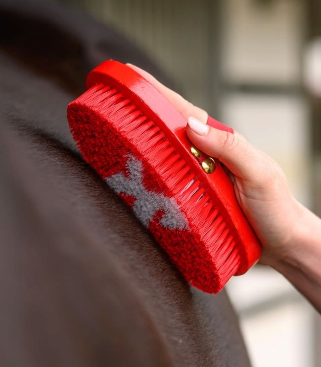 Den här kardaschen är specialdesignad för små händer. Med sina mjuka syntetborst som skonsamt avlägsnar smuts och damm blir borstningen en rolig stund. Det söta hästmotivets placering mitt i borsten gör borsten extra charmig – och ger barnen extra motivation att hjälpa till i stallet!