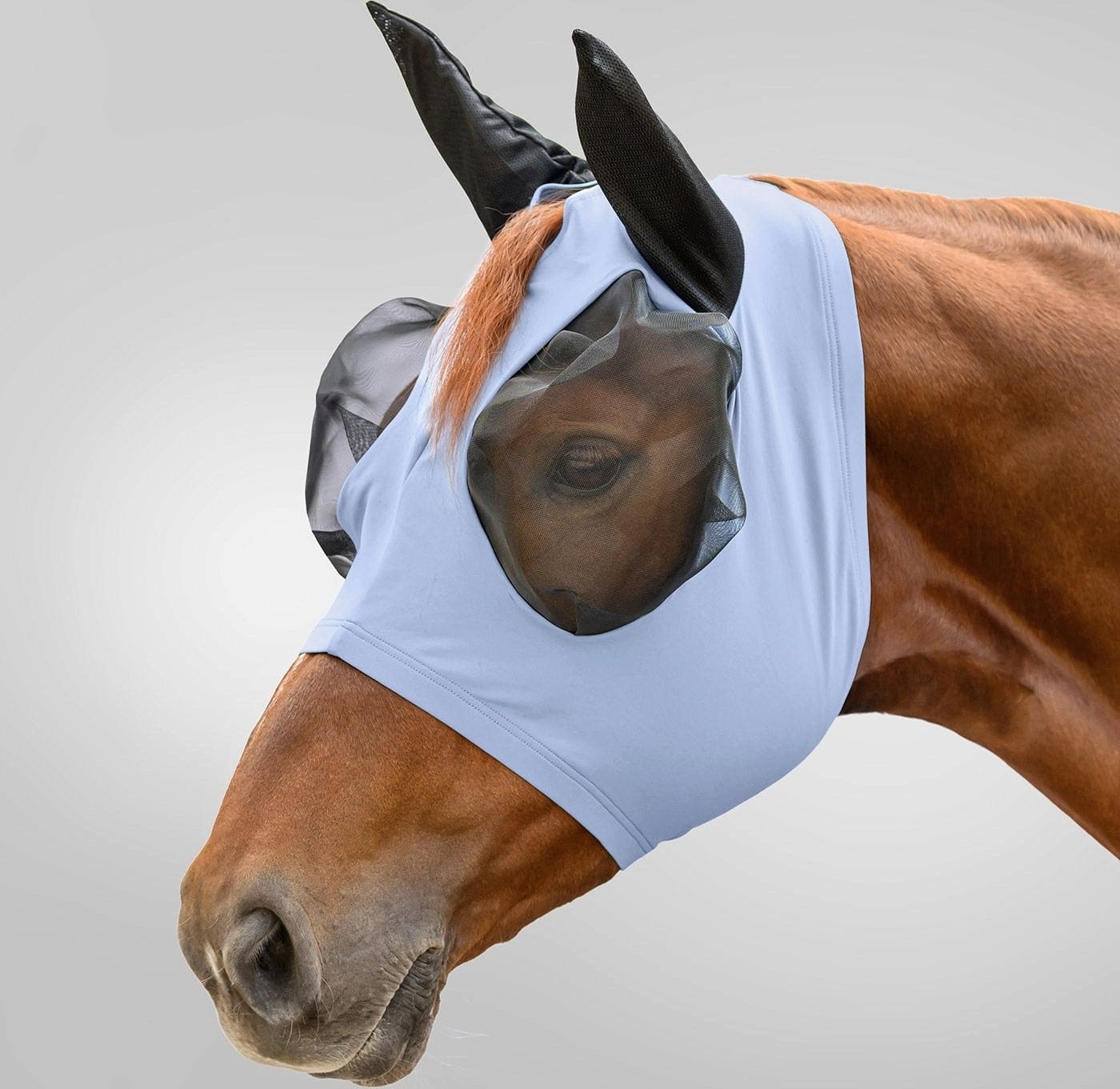 Masken är mjukt kantad runt om för att minska friktion på känsliga områden. De integrerade örondelarna i luftgenomsläppligt mesh ger god ventilation även under varma dagar och hindrar svidknott från att ta sig in. Den breda och elastiska kardborreknäppningen gör masken enkel att sätta på och ser till att den sitter säkert och bekvämt även när hästen rör sig livligt. Ett genomtänkt val för dig som prioriterar flexibilitet och hög komfort.