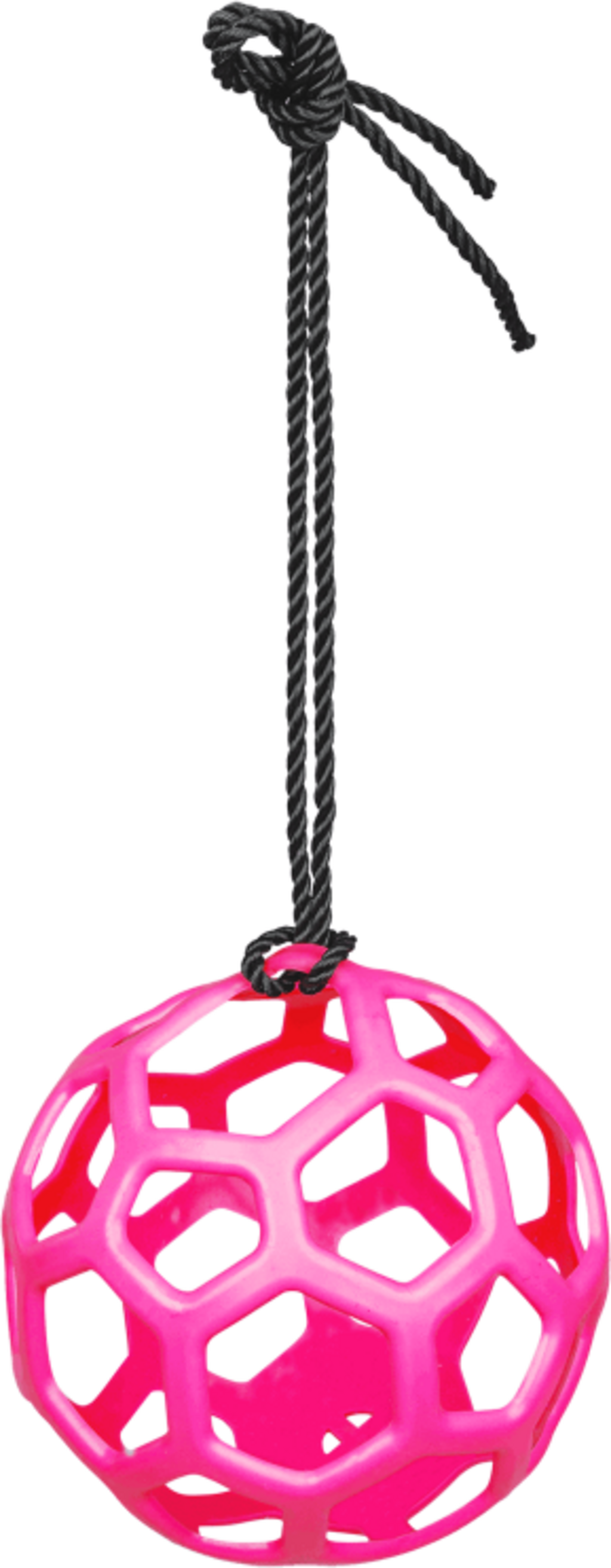 Fyll bollen enkelt med hö och lägg gärna till godsaker som morots- eller äppelbitar för att öka både smak- och lekgädje. Med det medföljande 2 meter långa bandet kan du hänga upp bollen i boxen eller på paddocken – redo för timmar av aktivering.