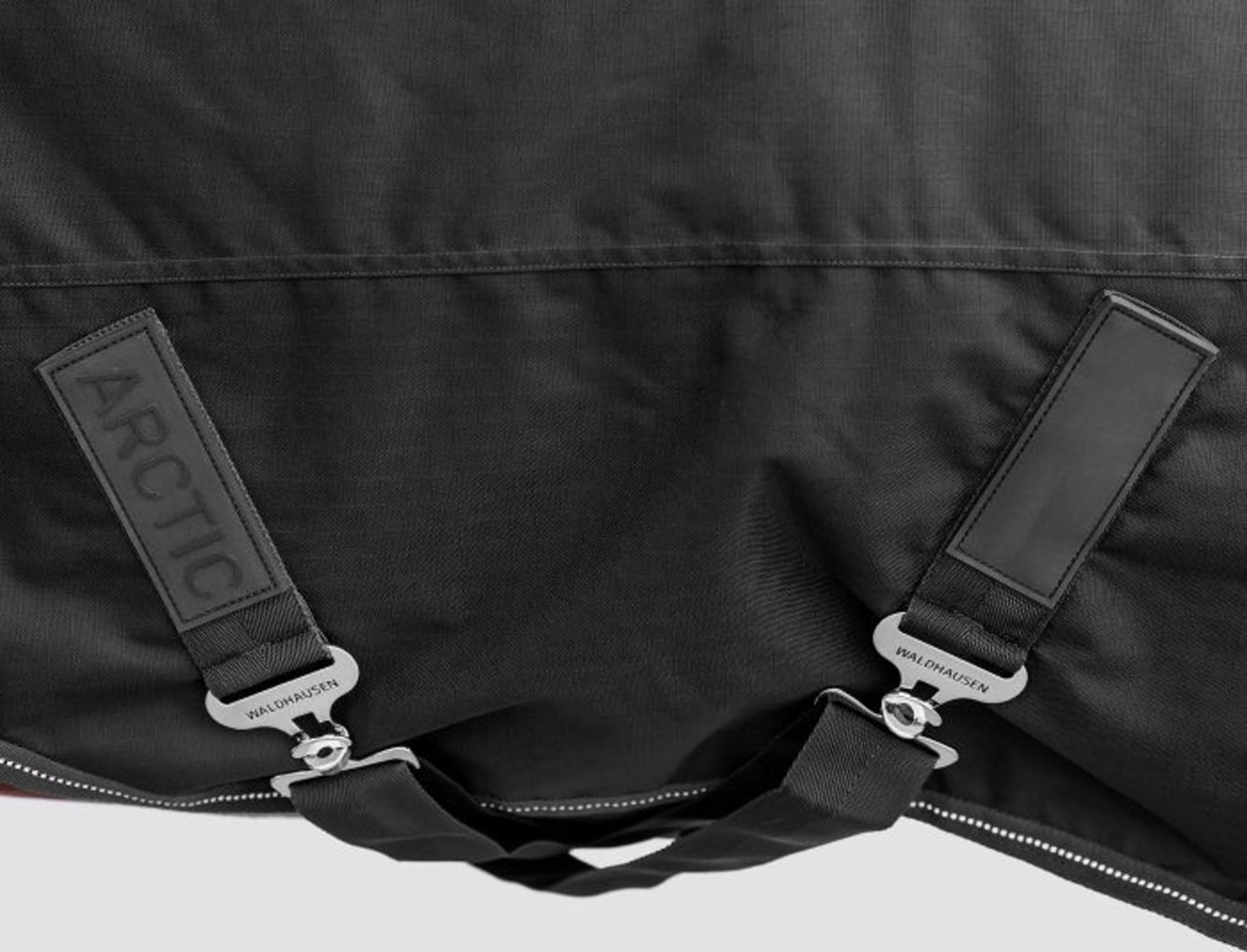 Den generösa kilen säkerställer att din häst har obegränsad rörelsefrihet, oavsett om den springer, äter eller snoozar. Insidan av täcket är fodrat med ett antibakteriellt foder för optimal komfort. Med sitt foder på 100 g erbjuder den också lätt värmeisolering under kyligare dagar - och om temperaturen sjunker ytterligare kan du enkelt kombinera Arctic-mattan med en matchande undermatta tack vare clip-in-mattasystemet. På så sätt är du flexibelt utrustad för alla väder.