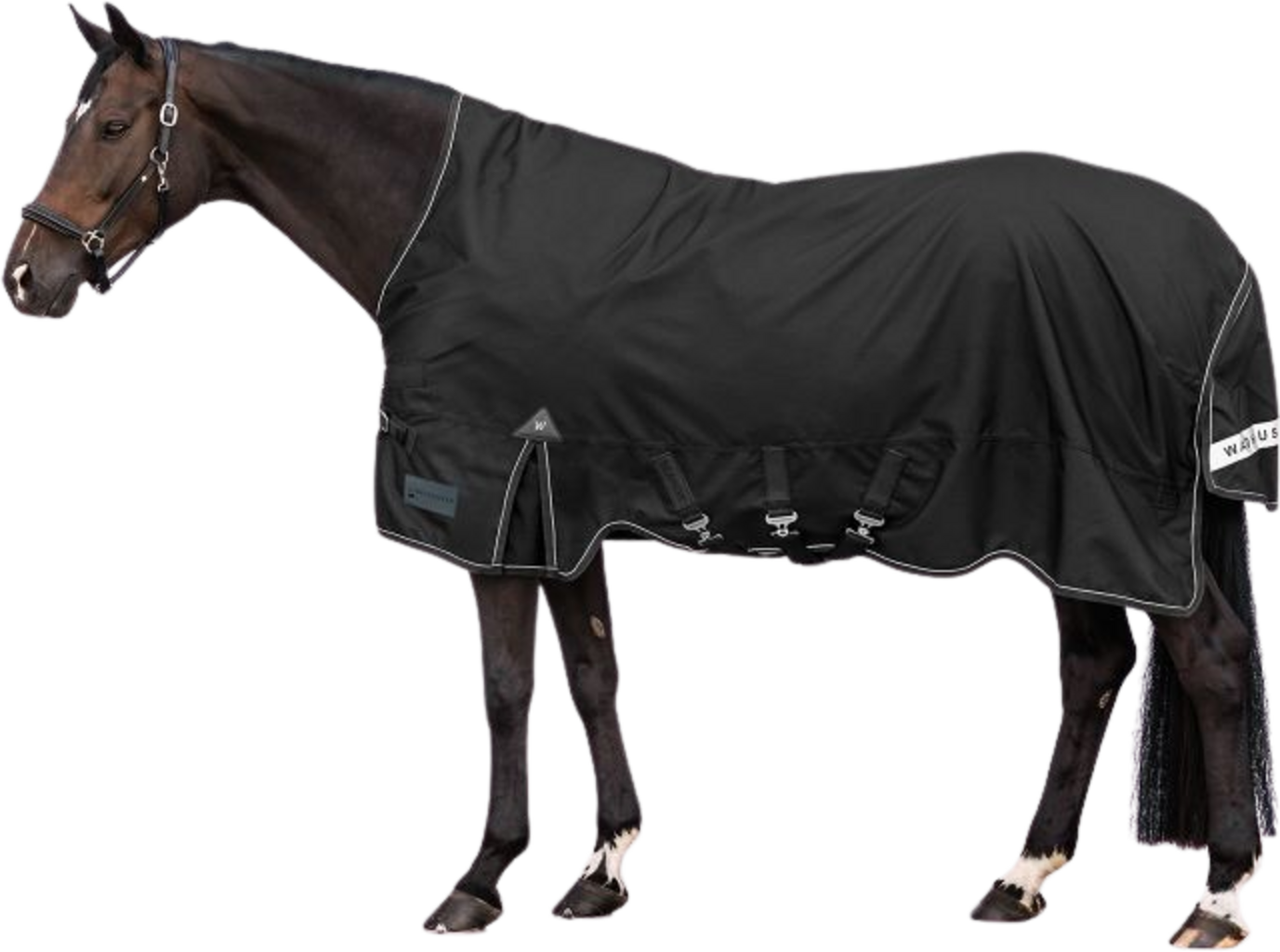 Även passformen är genomtänkt: Den nya, enstyckade V-frontknäppningen i kombination med tre maggjordar ger en stabil och säker passform utan att täcket glider. Din häst får full rörelsefrihet tack vare rörelsevecken, medan det extra stora svansskyddet och den reflekterande passpoalen säkerställer synlighet i mörker.