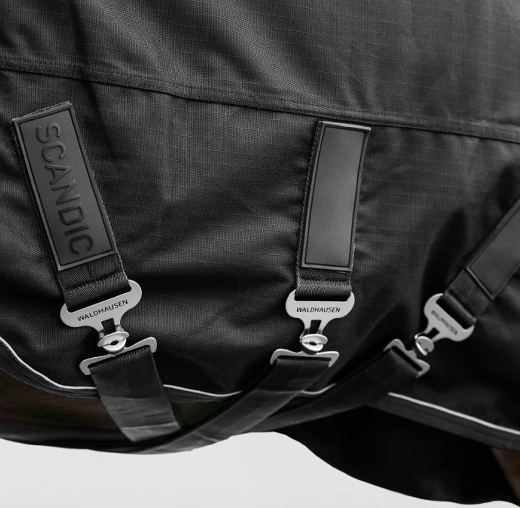 Du vill ge din häst det allra bästa, och det får du med Waldhausen Outdoortäcke Scandic. Det yttersta lagret är tillverkat av extra slitstarkt 1200 denier ripstop-material som tål hård användning och självklart är helt vattentätt.