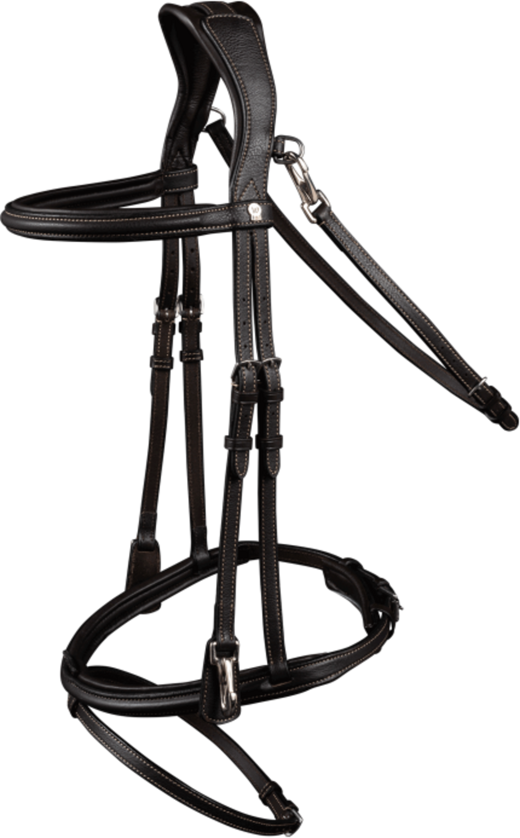 För hästens välbefinnande är nackstycket anatomiskt utformat för att fördela trycket jämnt bakom öronen. Den engelsk-kombinerade nosgrimman samt det raka pannbandet och nackstycket är mjukt vadderade för att minska risken för skav. Tillverkat av högkvalitativt läder i X-Line-serien och utrustat med rostfria beslag erbjuder detta träns både hållbarhet och funktion för daglig användning.