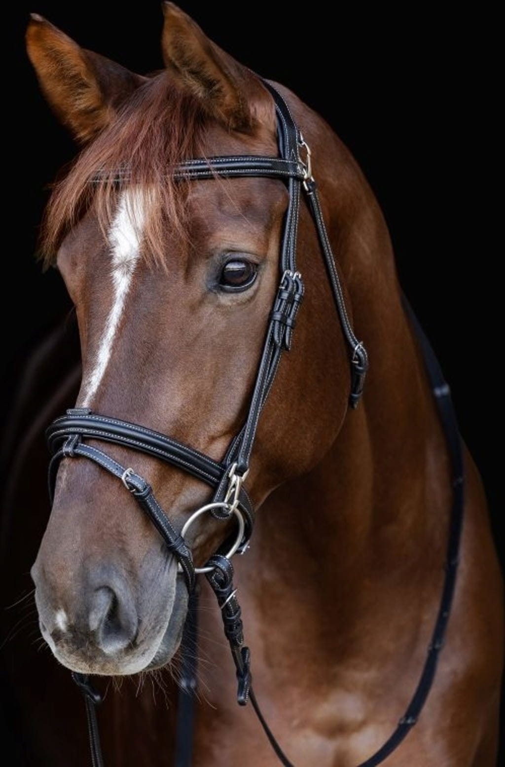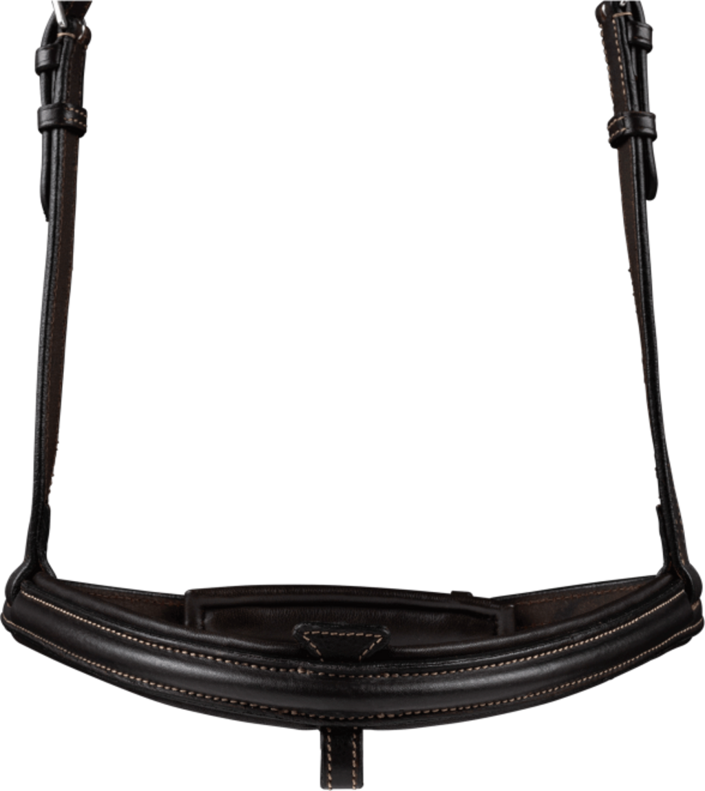 För hästens välbefinnande är nackstycket anatomiskt utformat för att fördela trycket jämnt bakom öronen. Den engelsk-kombinerade nosgrimman samt det raka pannbandet och nackstycket är mjukt vadderade för att minska risken för skav. Tillverkat av högkvalitativt läder i X-Line-serien och utrustat med rostfria beslag erbjuder detta träns både hållbarhet och funktion för daglig användning.